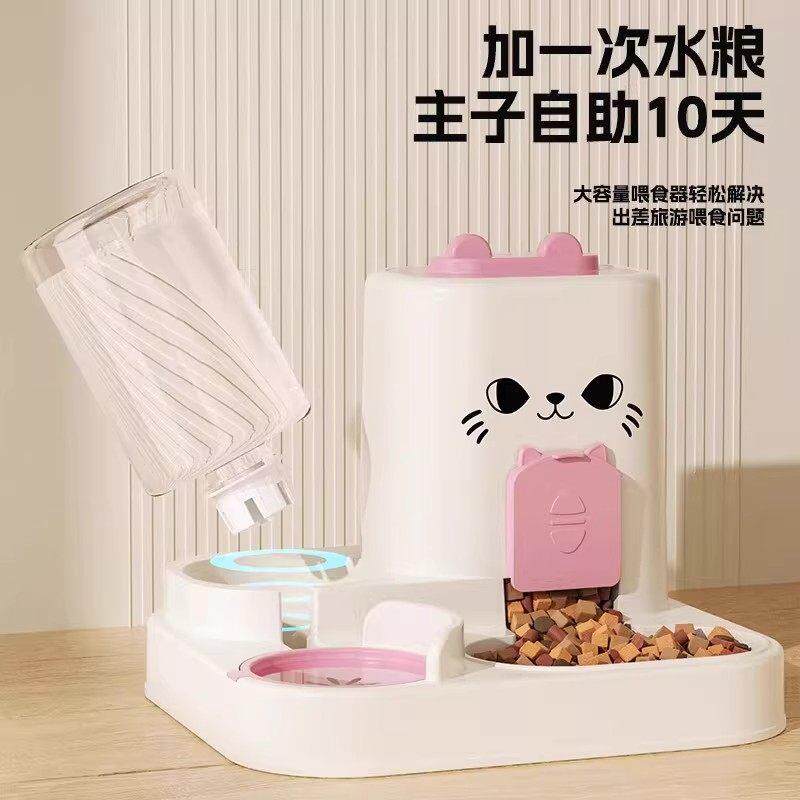 猫碗狗碗猫食盆猫咪猫粮自动喂食器饮水一体猫盆自动宠物喝水双碗