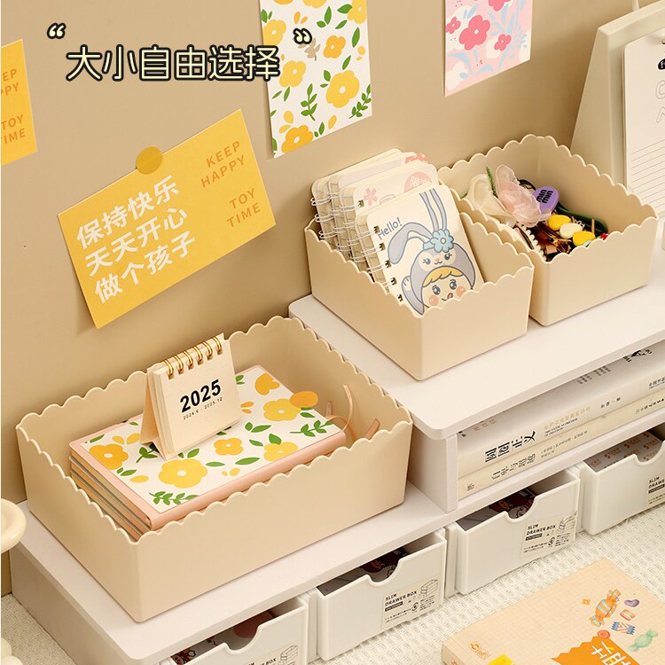桌面收纳盒化妆品塑料置物盒家用杂物零食储物筐宿舍浴室整理盒子