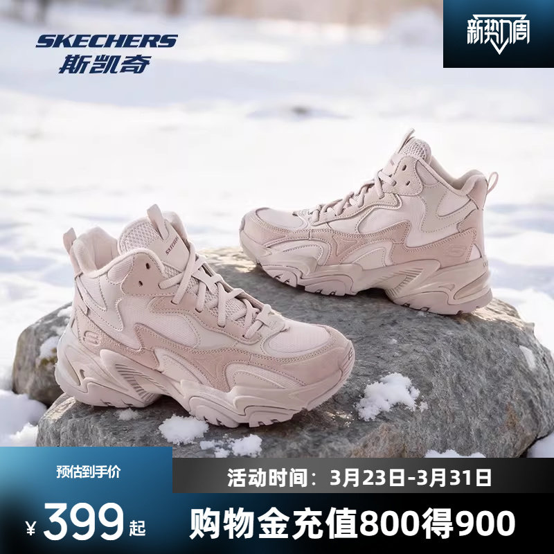 斯凯奇机甲鞋女子加绒保暖休闲鞋黑色鞋高帮厚底增高舒适潮流百搭