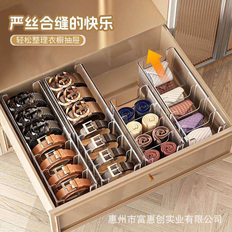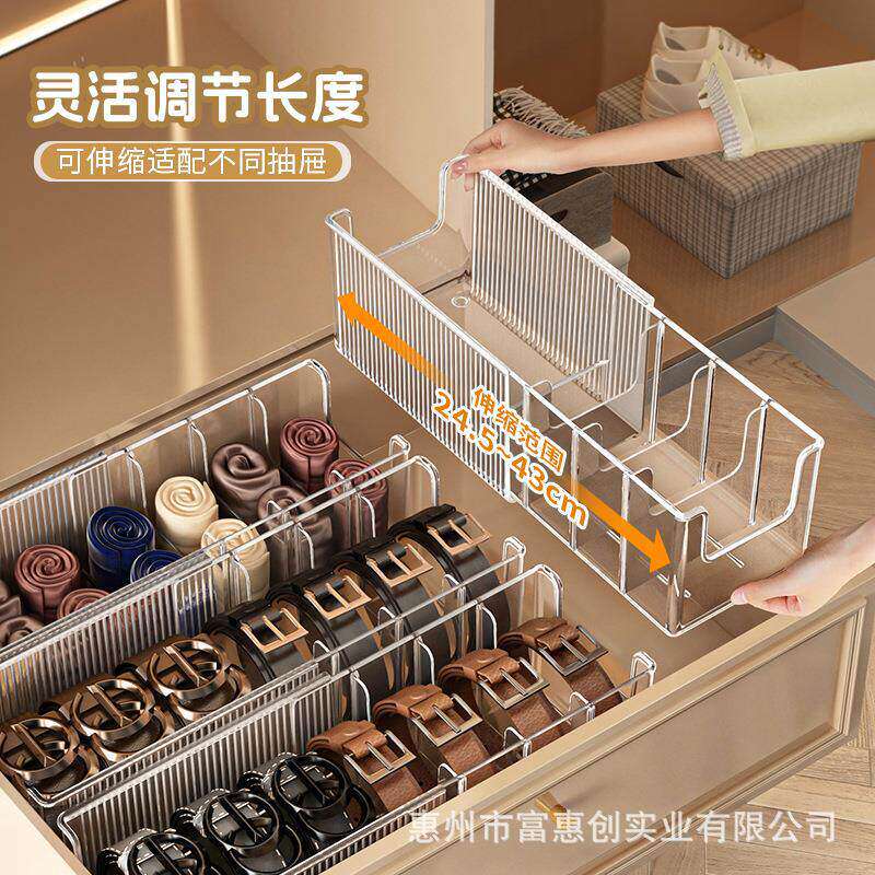 皮带收纳盒家用可伸缩男士领带丝巾展示架分格多功能腰带整理神器