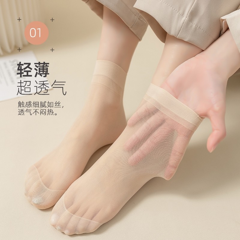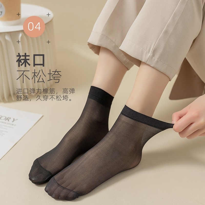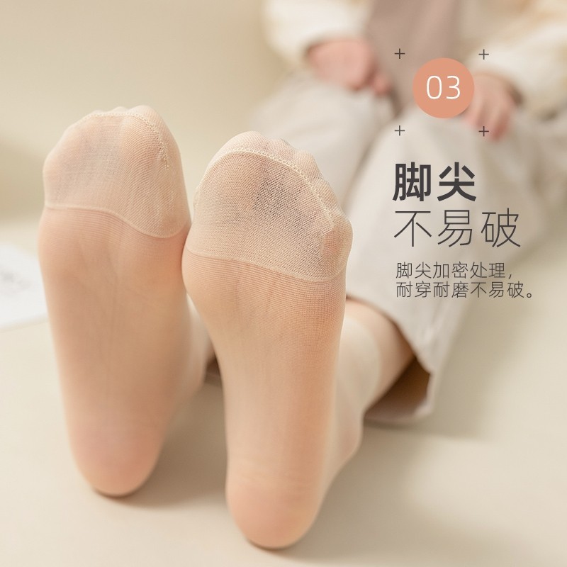 钢丝女士丝袜短款水晶丝超薄防勾丝袜女夏季防滑袜子耐磨肉色短袜