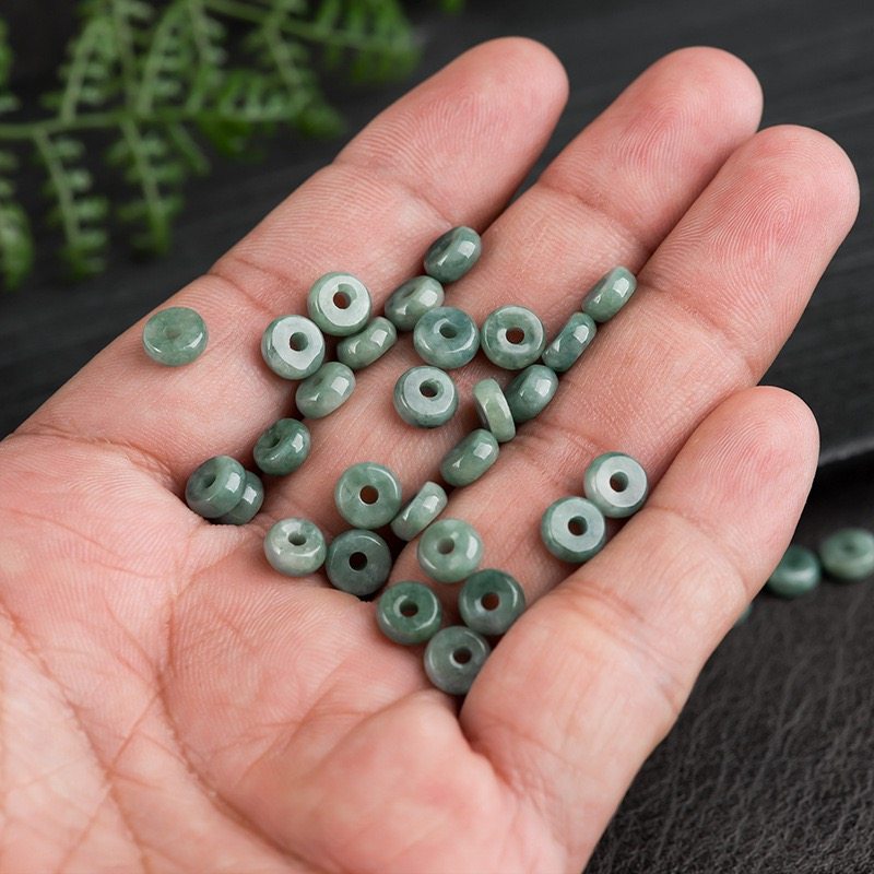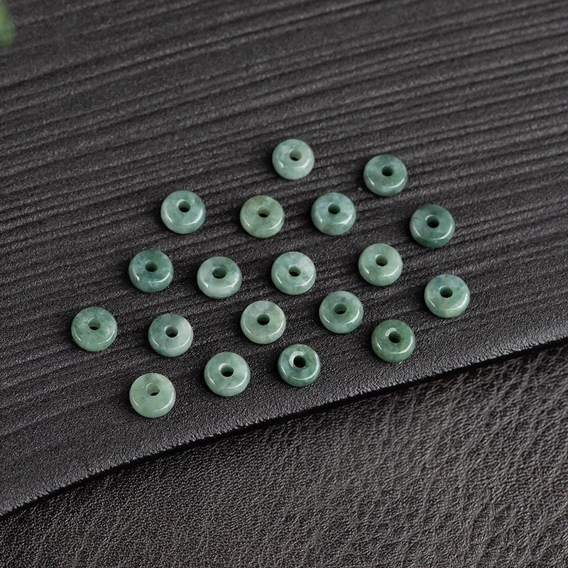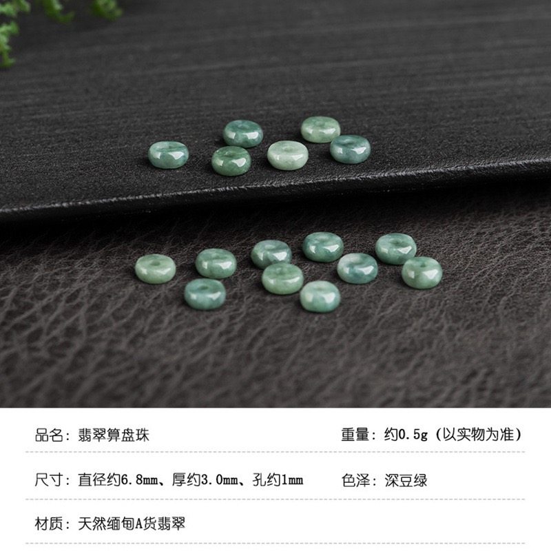 天然翡翠A货翡翠深豆绿算盘珠玉珠子单颗玉石散珠手工DIY饰品配件
