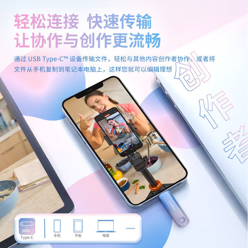 闪迪创作者系列Type-C闪存盘手机平板电脑通用高速U盘 USB3.2