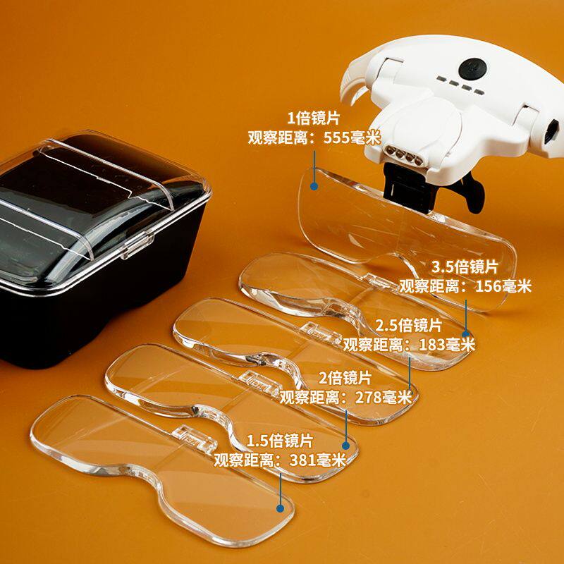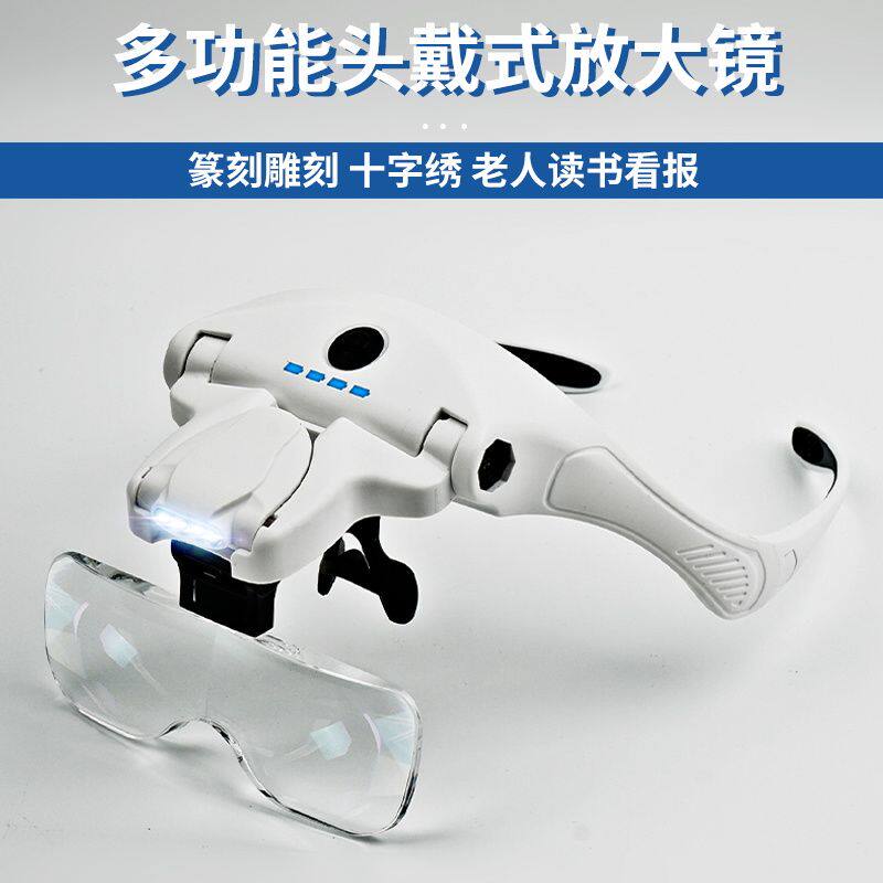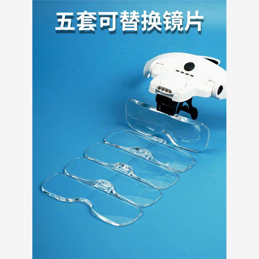 头戴式放大镜高清老人阅读维修电子电路板钟表可充电带灯折叠式