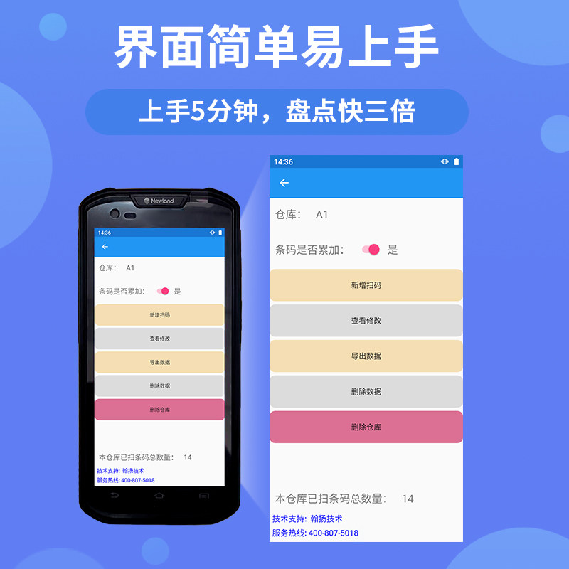 安卓手持终端数据采集器PDA仓库出入库管理系统excel导入条码扫描程序固定资产扫码枪APP二维码定制盘点软件