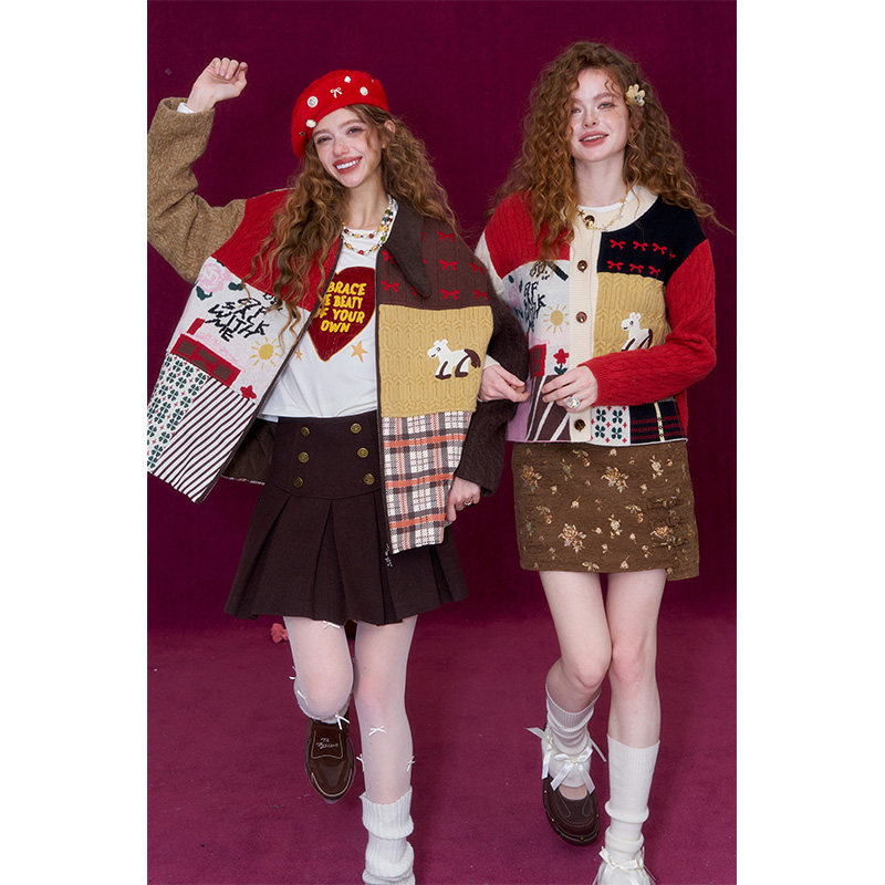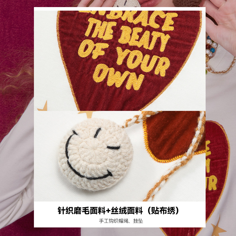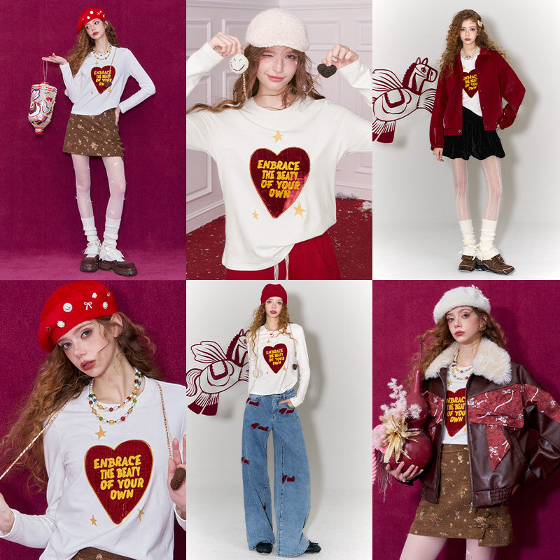 妖精的口袋白色爱心拼接长袖t恤女2026年春新款内搭上衣新年战袍