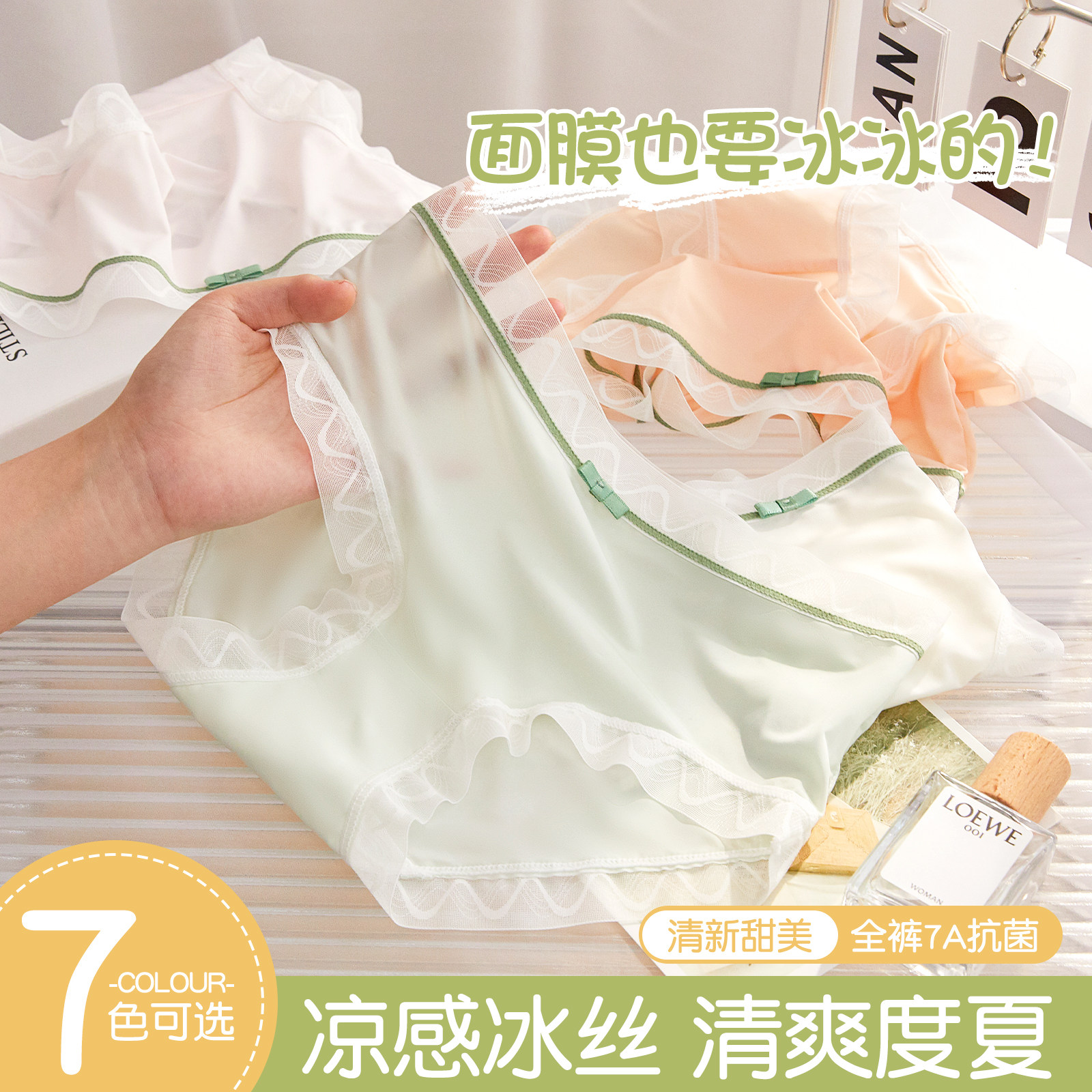 冰丝面膜内裤女生无痕夏季薄款纯棉抗菌裆甜美女士平角裤2026新款