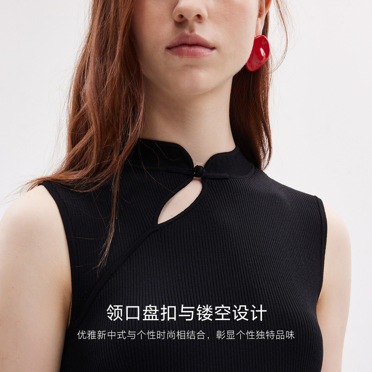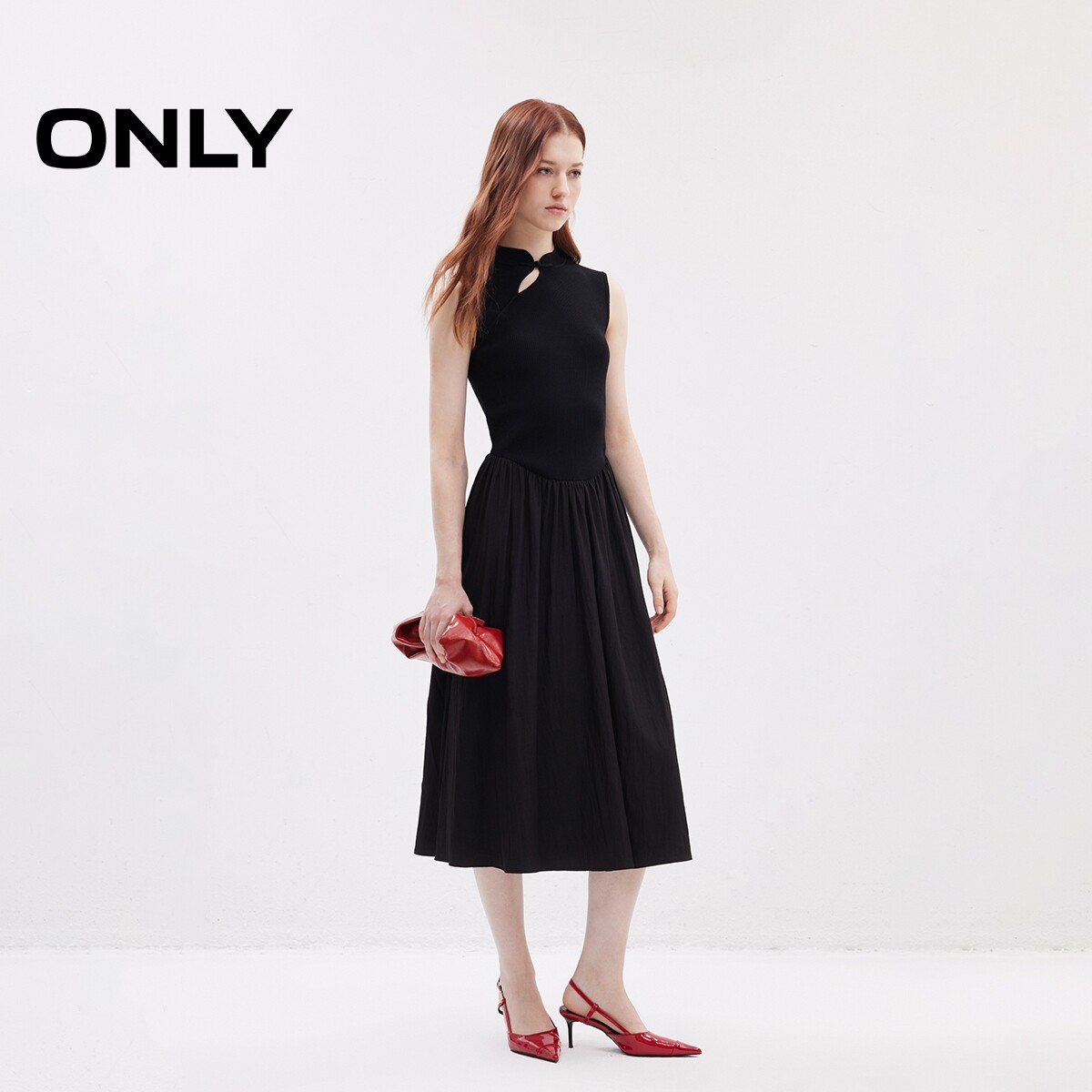【新中式】ONLY奥莱春季新款国风修身收腰长裙无袖连衣裙女
