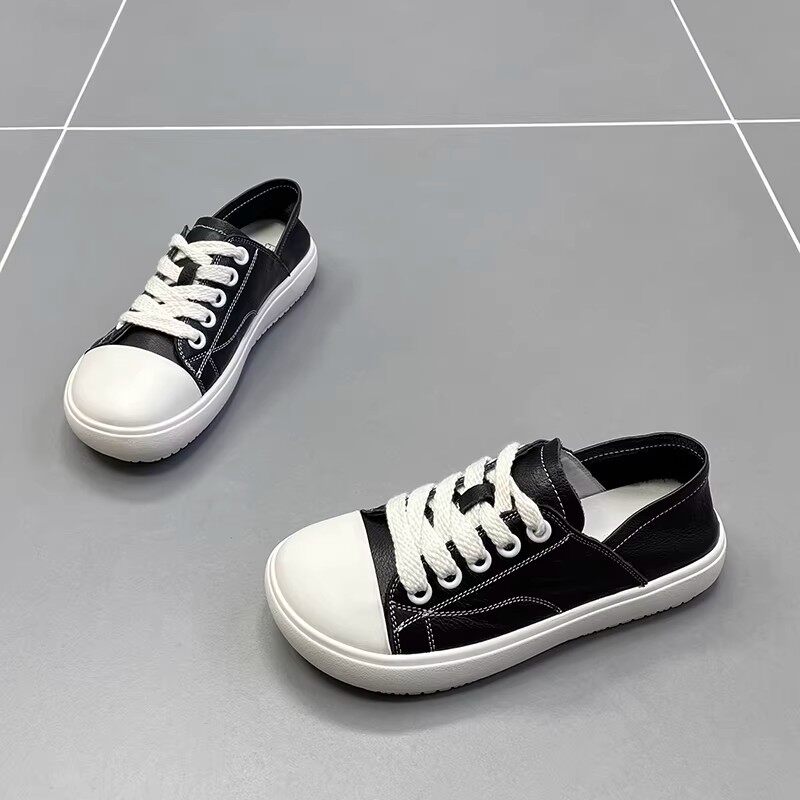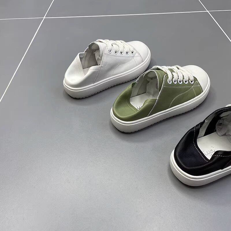 真皮两穿小白鞋女2026春季新款低帮软底厚底透气运动休闲百搭板鞋