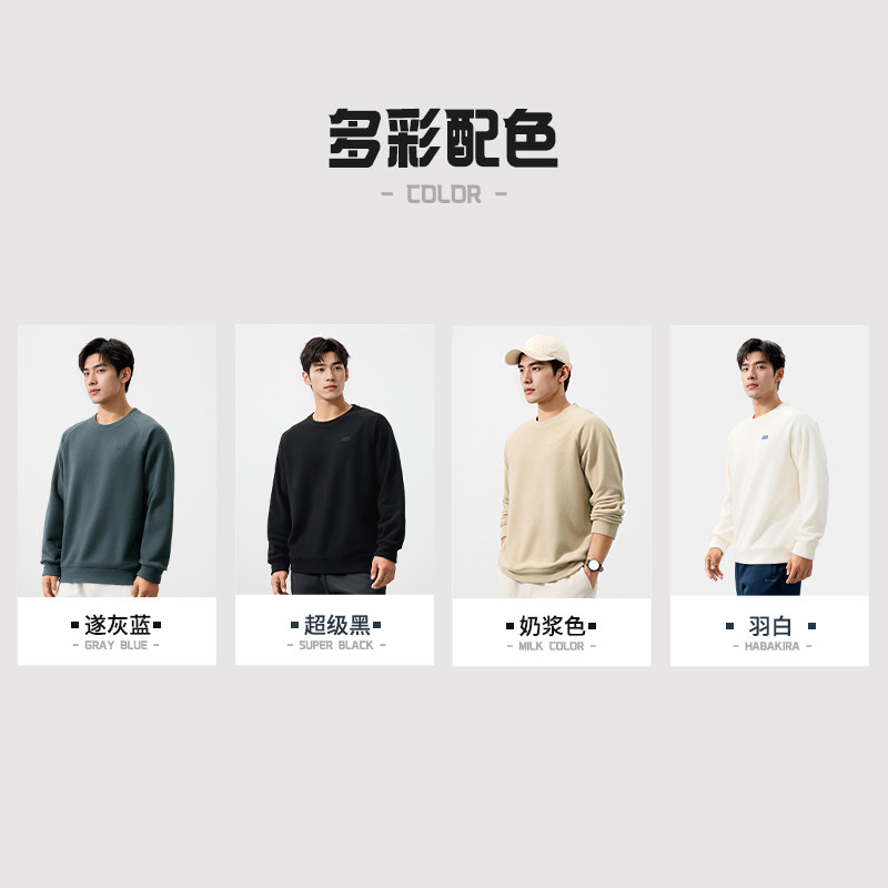 安踏加绒卫衣男保暖圆领套头衫男款2025冬季加厚宽松男士运动上衣