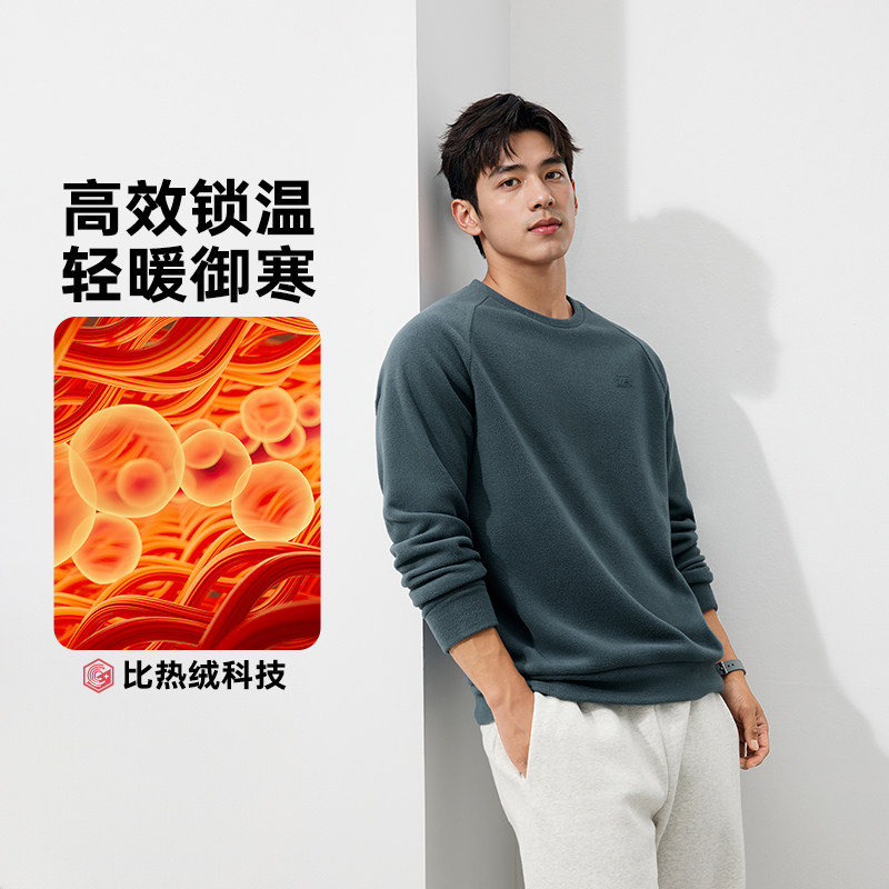 特步加绒卫衣男士秋季新款运动服男装休闲内搭长袖保暖圆领套头衫
