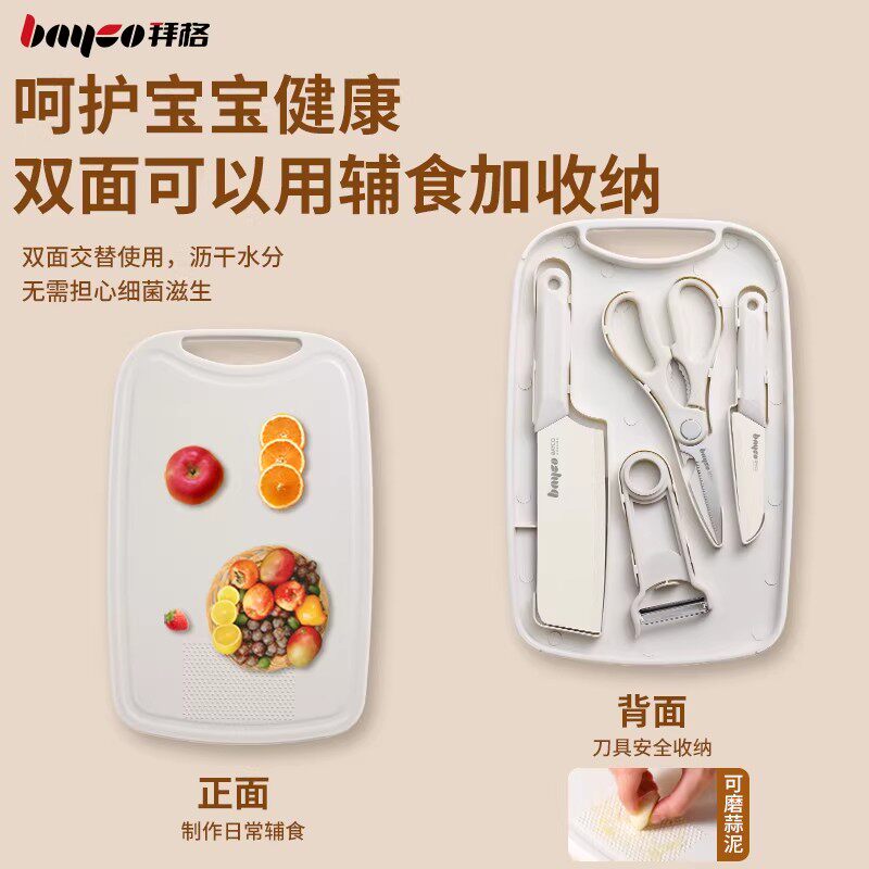 拜格婴儿辅食菜板刀具套装宝宝专用菜刀儿童家用收纳砧板工具组合