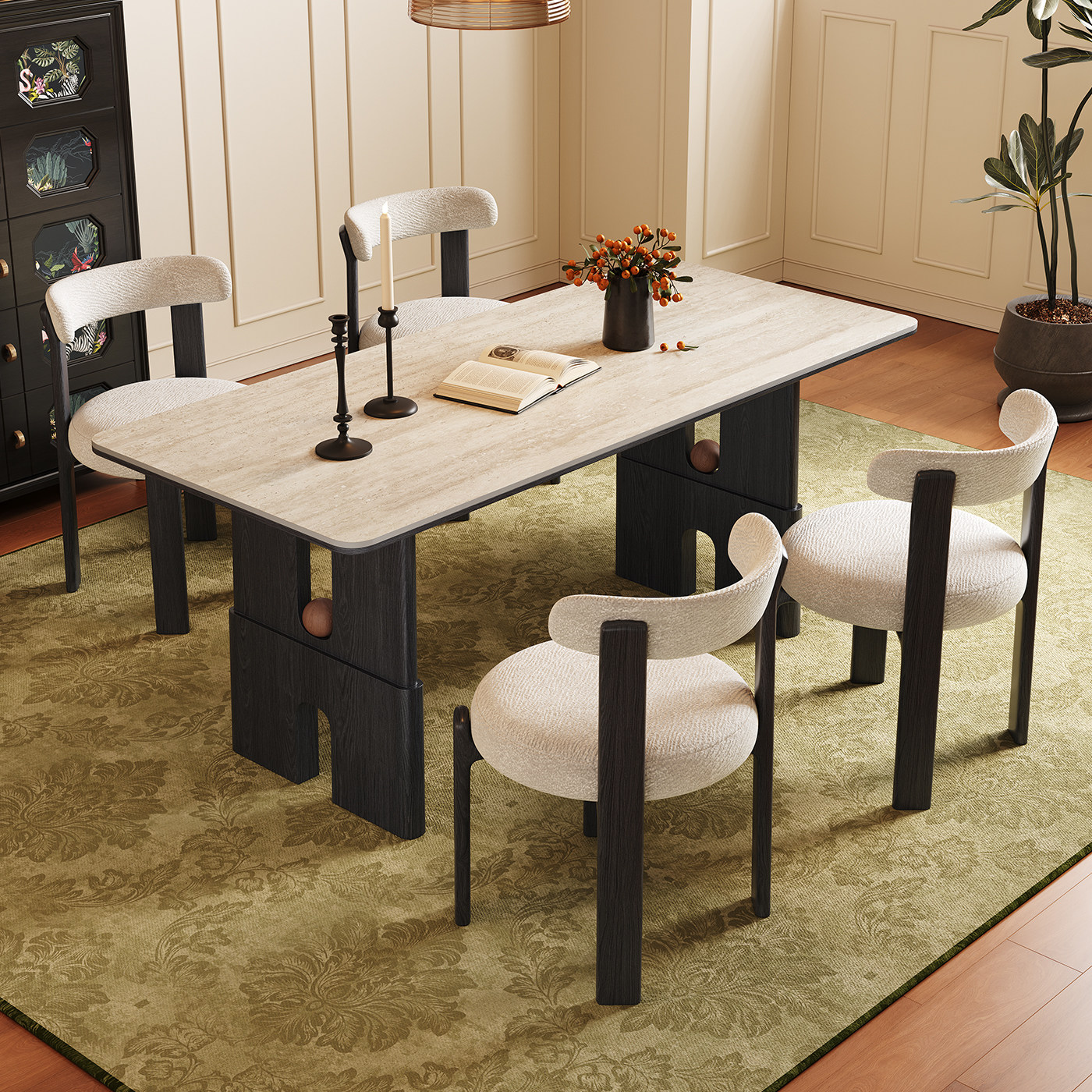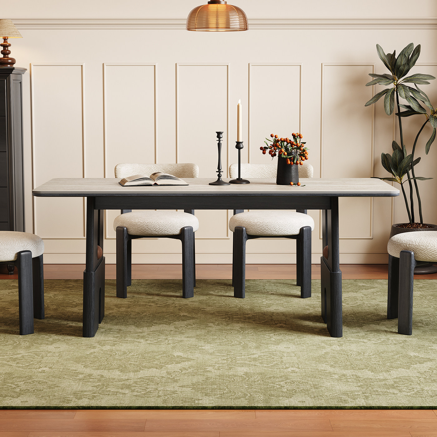 实木餐桌长方形2026新款家用小户型饭桌子复古中古风洞石岩板餐桌