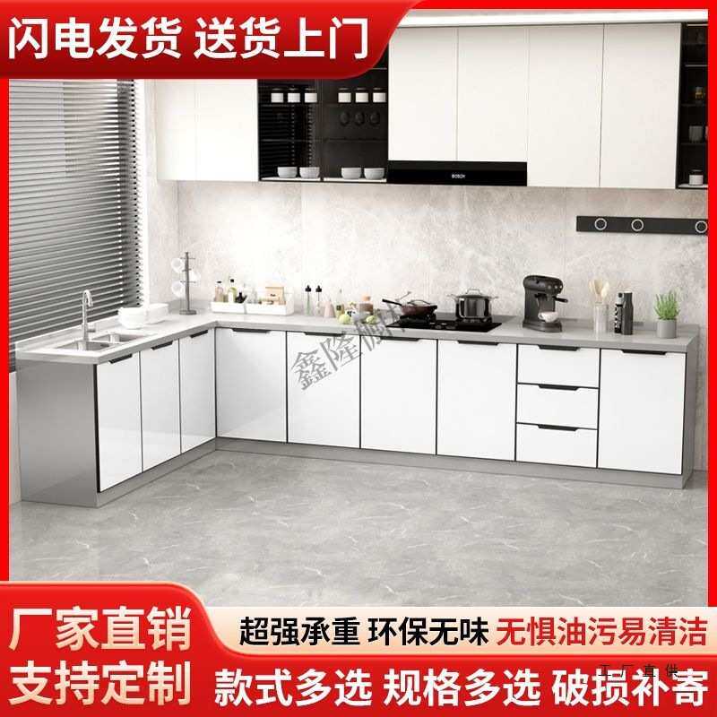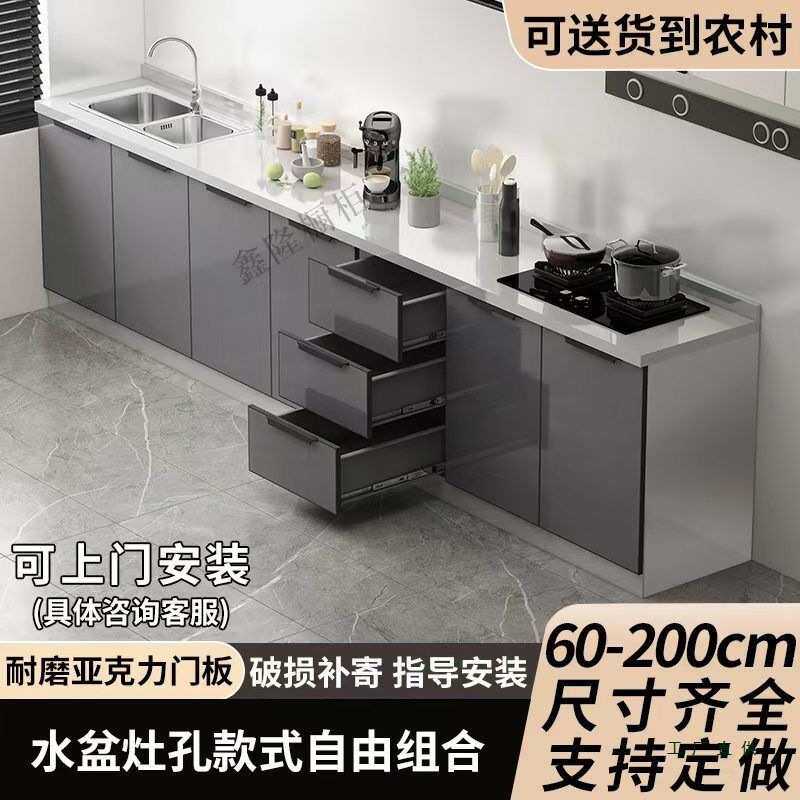 橱柜不锈钢灶台柜子落地转角餐边柜经济型厨柜家用整体一体水槽柜
