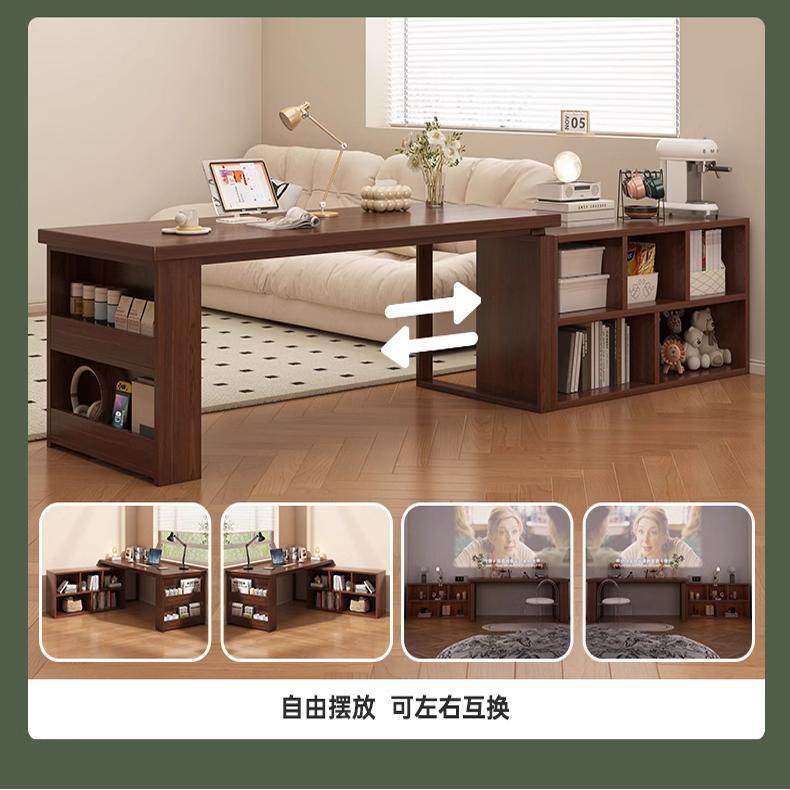 转角书柜书桌一体实木工作台家用女生卧室床边电脑桌拐角办公桌子