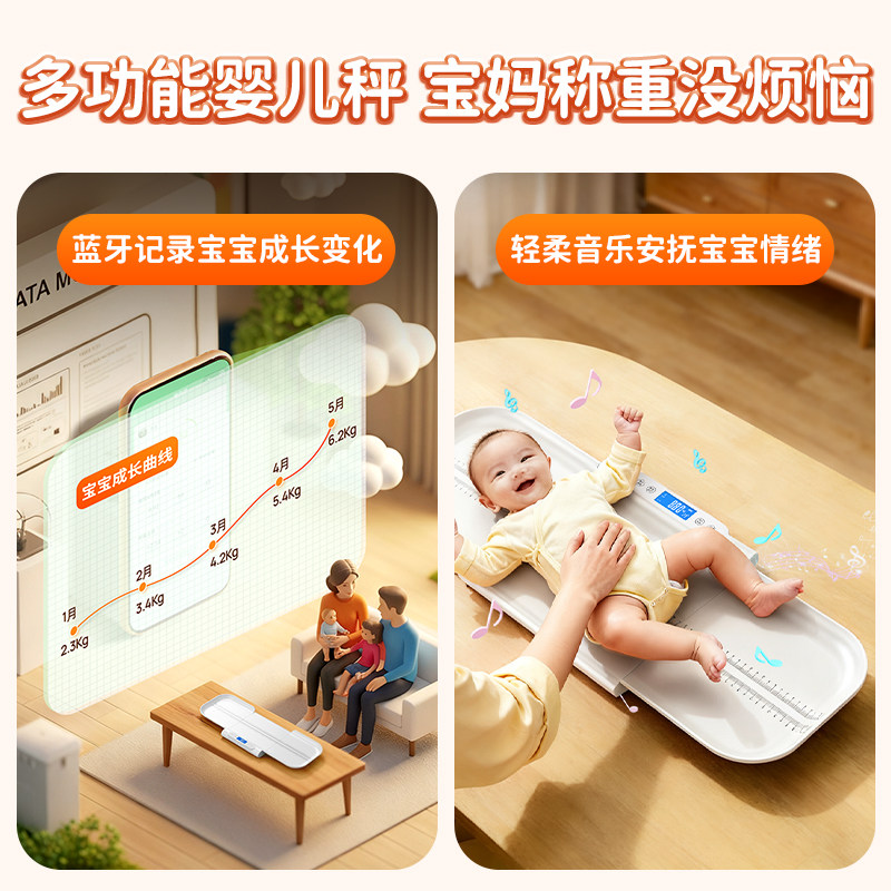 meilen宝宝婴儿体重秤精准家用新生婴儿称身高宠物电子秤专用测量