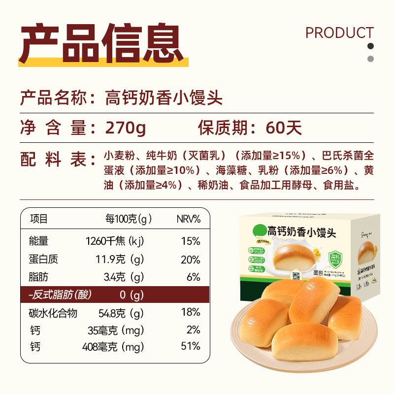 臻选 高钙纯牛奶香小馒头无添加软面包宝宝孕妇营养健康早餐