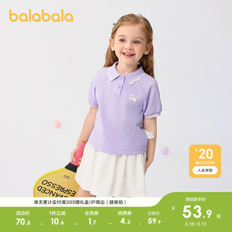 巴拉巴拉童装女童短袖T恤儿童宝宝上衣轻薄新款夏装甜美POLO衫潮