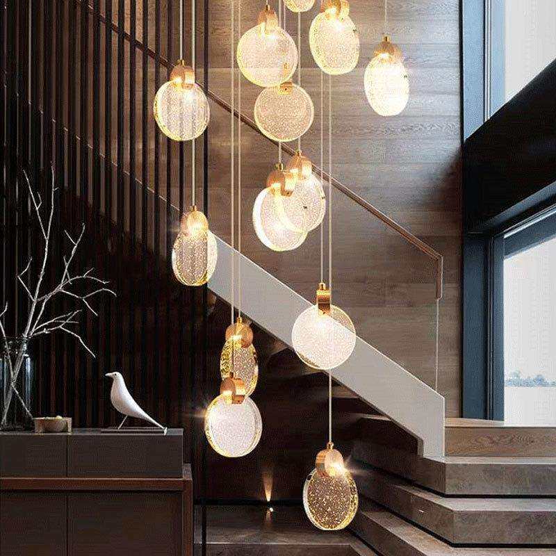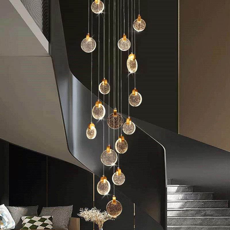 别墅复式楼梯长吊灯网红loft挑空水晶吊灯现代简约轻奢床头餐厅灯