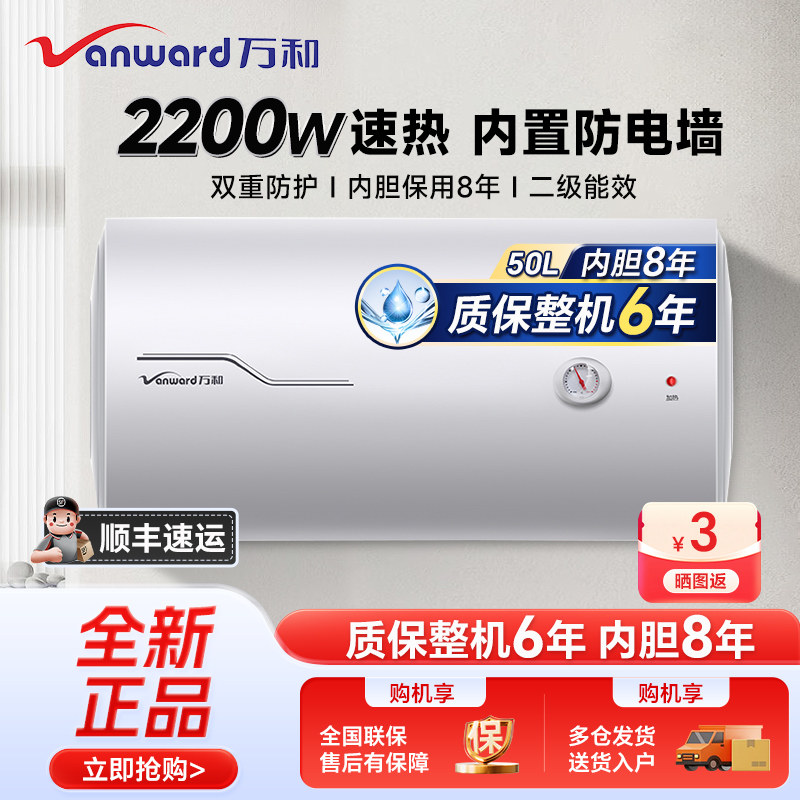 万和电热水器40/50/60升储水速热家用出租房双重防电搪瓷内胆镁棒