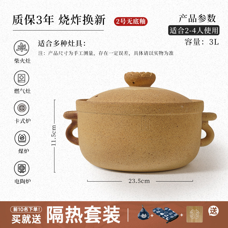 臻三环太生砂锅煲汤煮粥老式手工砂锅耐高温干烧不裂燃气灶用砂锅