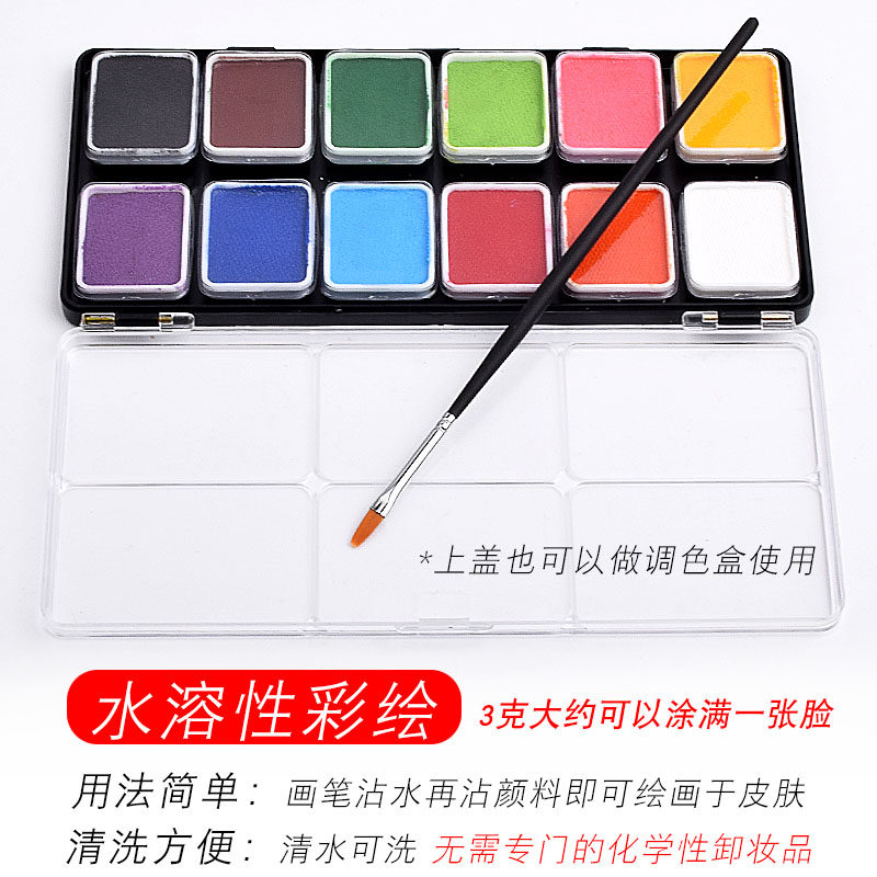 蜡艺12色6克10克水性人体彩绘颜料套装 舞会派对彩绘儿童节日彩妆