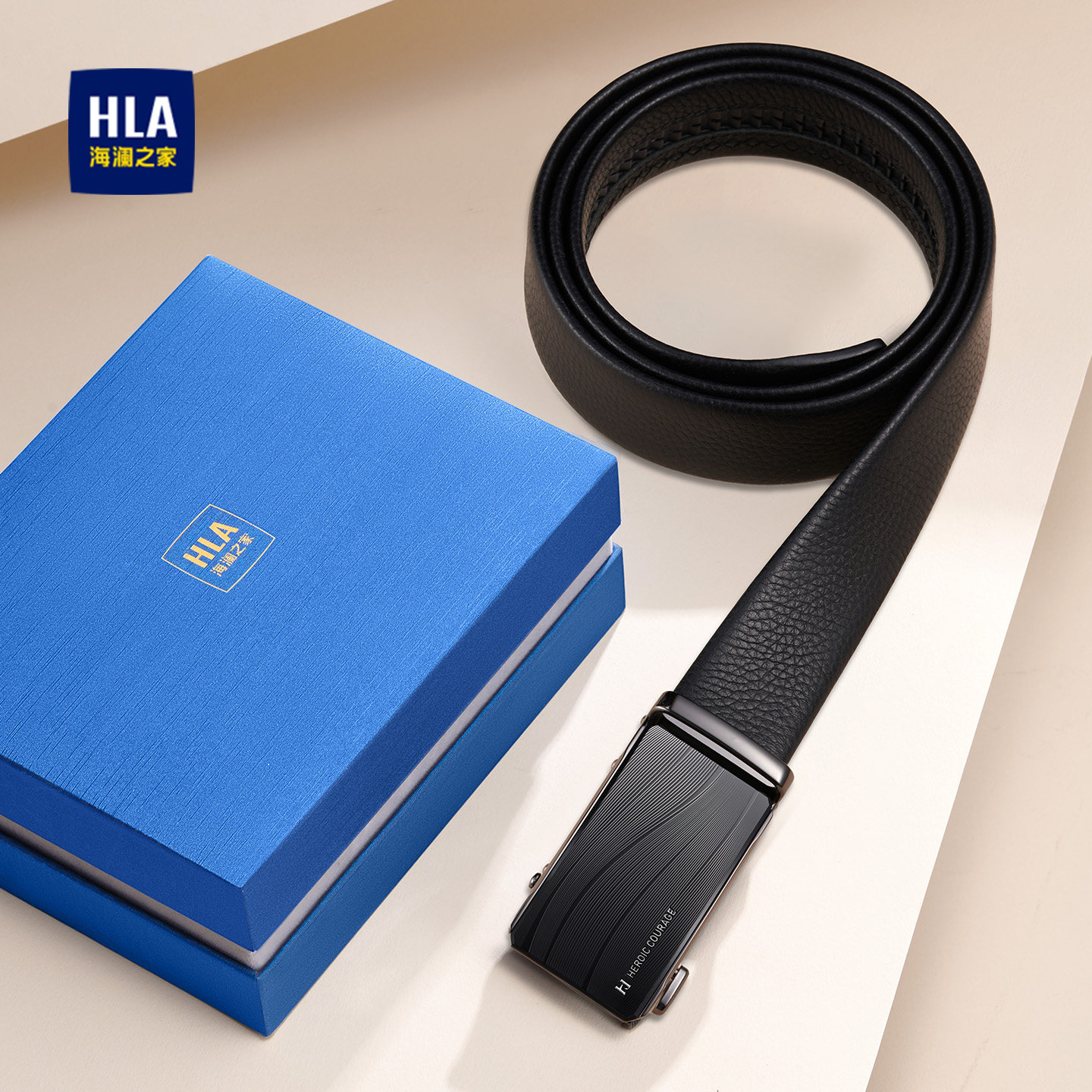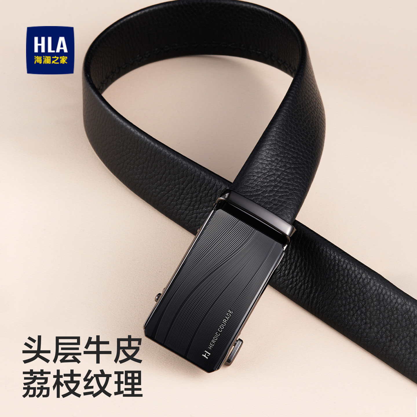 海澜之家头层牛皮皮带男士潮流新款真皮腰带年轻人商务自动扣裤带