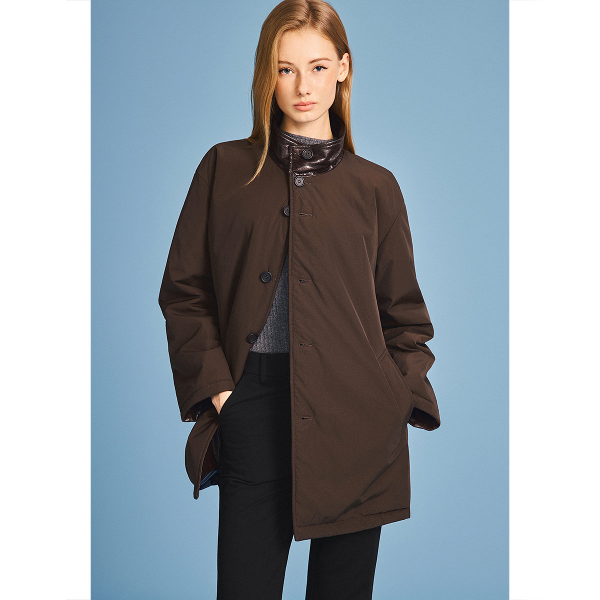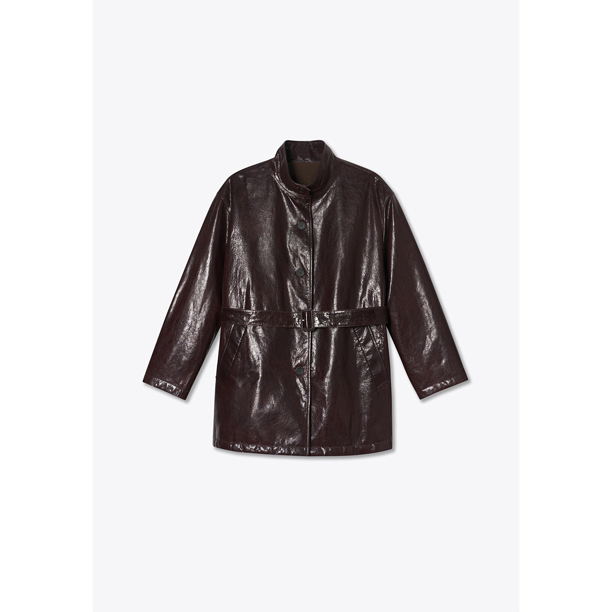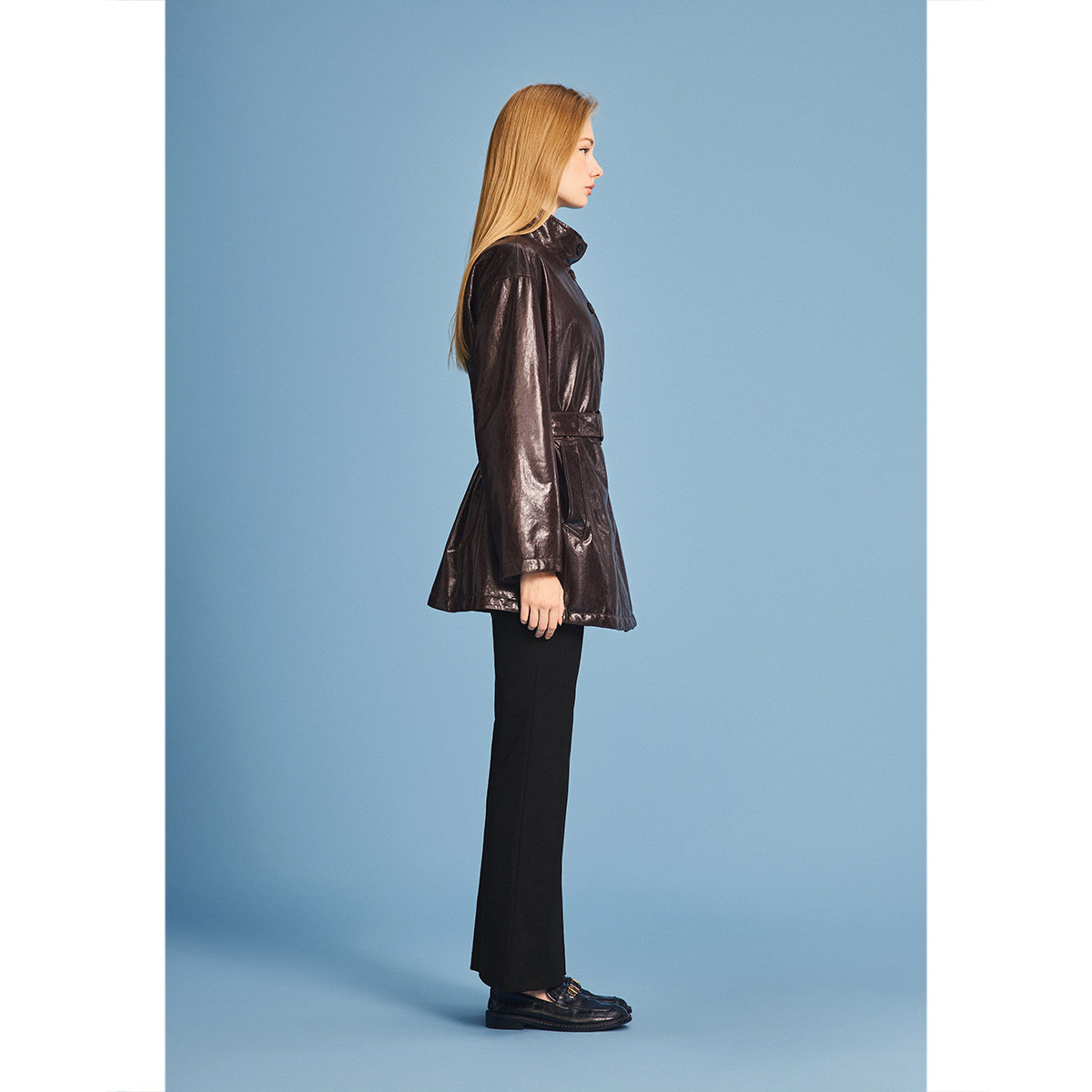 Eland衣恋皮衣女纯色带拉链长袖翻领外套2025冬季新款
