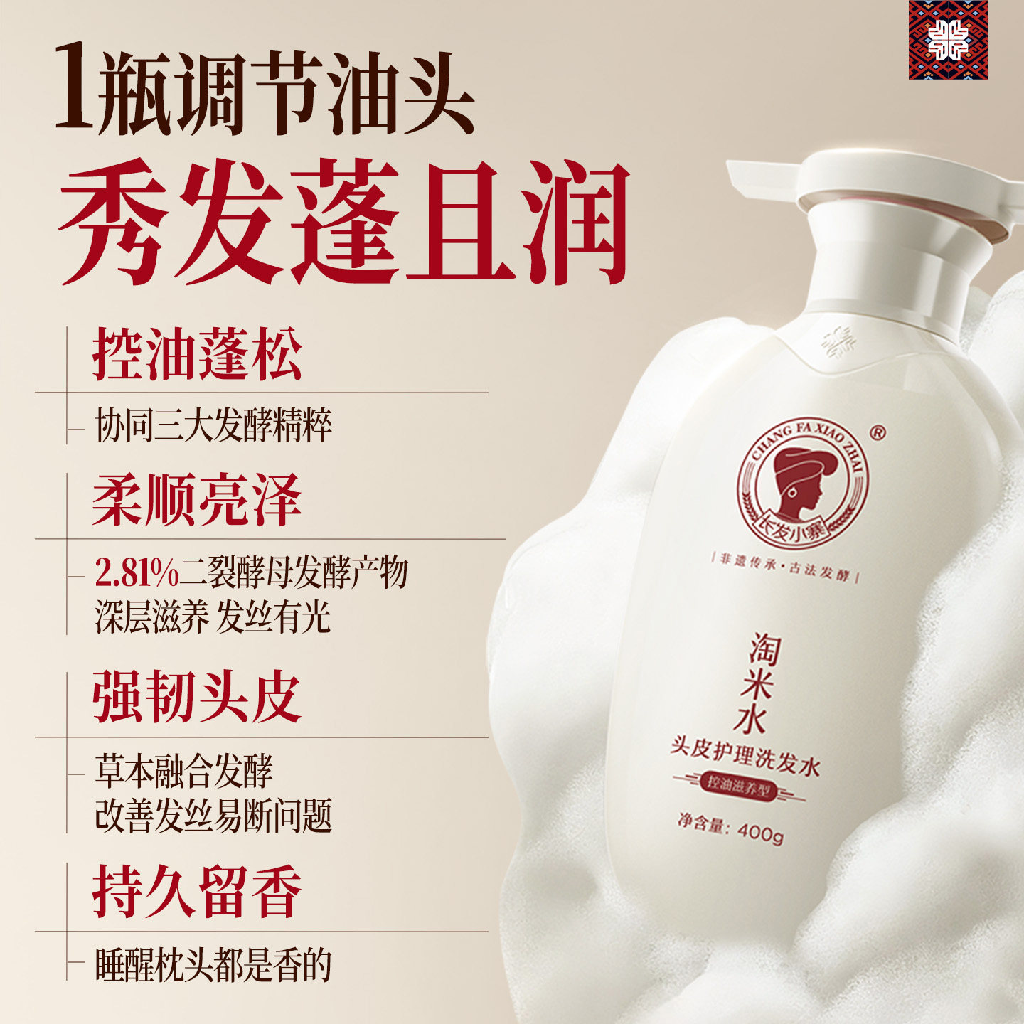 长发小寨非遗淘米水洗发水控油蓬松去屑官方正品固发膏护发侧柏叶