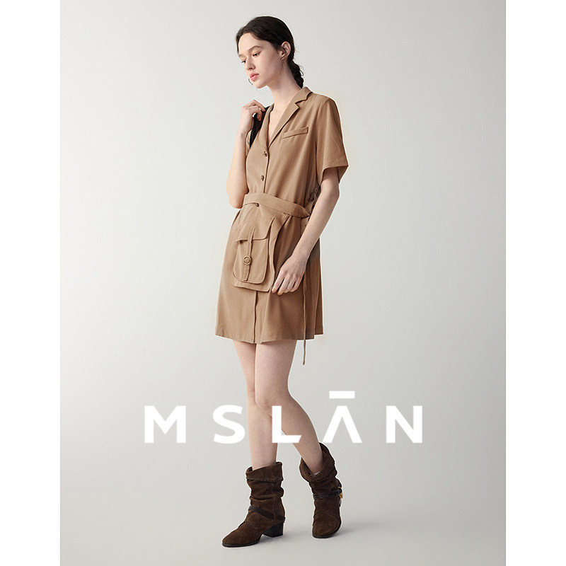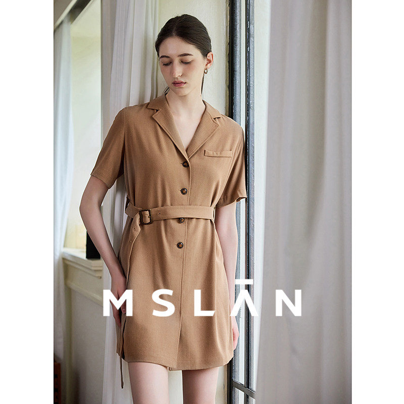 老钱风/MSLAN26春气质翻领收腰系带休闲西装连衣裙