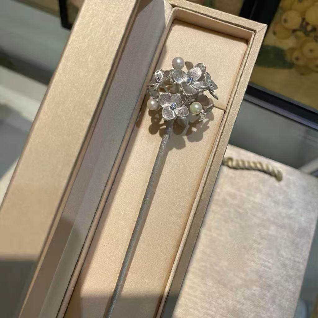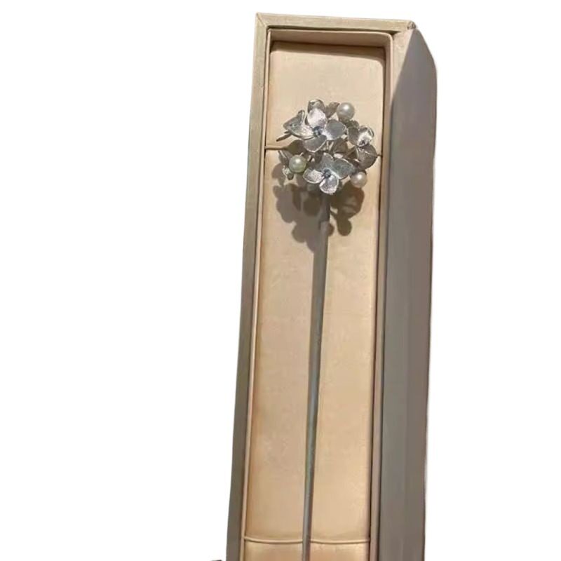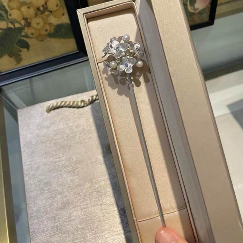 拉丝绣球花发簪小众发簪女新中式发簪古风高级感精致气质独特设计