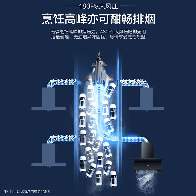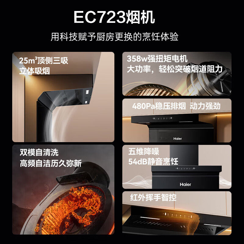 海尔顶侧3吸抽吸油烟机CXW-358-EC723家用大吸力25m³免清洗480Pa
