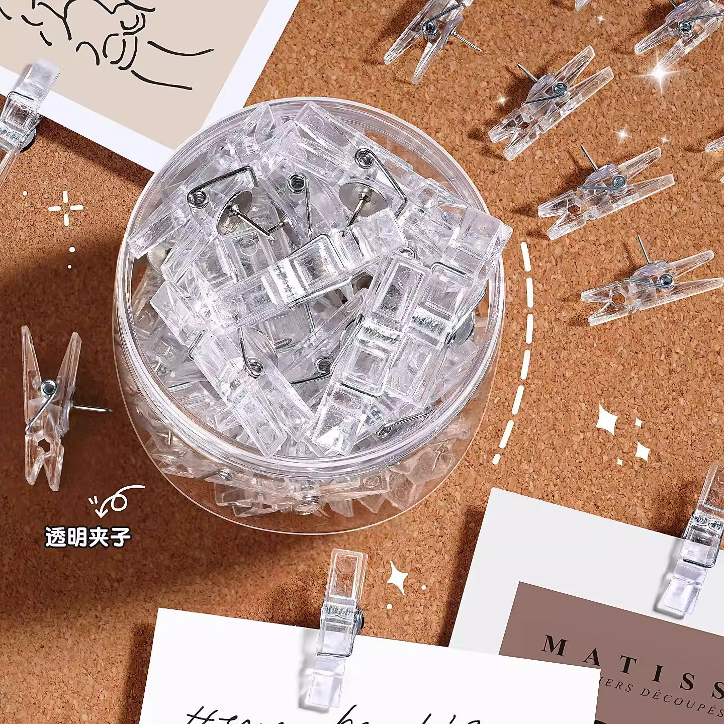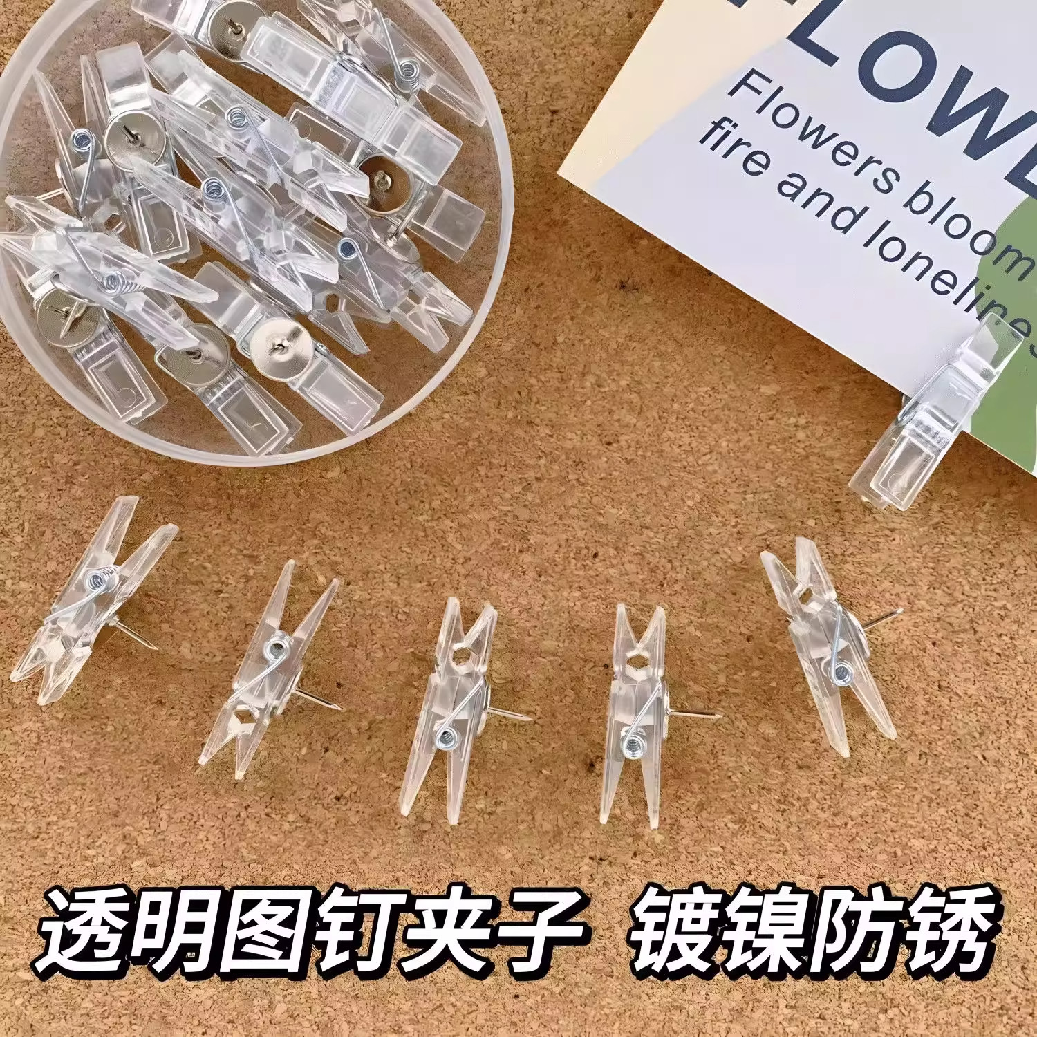 透明照片夹ins图钉夹子挂钩幼儿园留言毛毡板钉子工字钉卡片相片展示夹软木板毛毡墙diy明信片固定挂墙装饰钉
