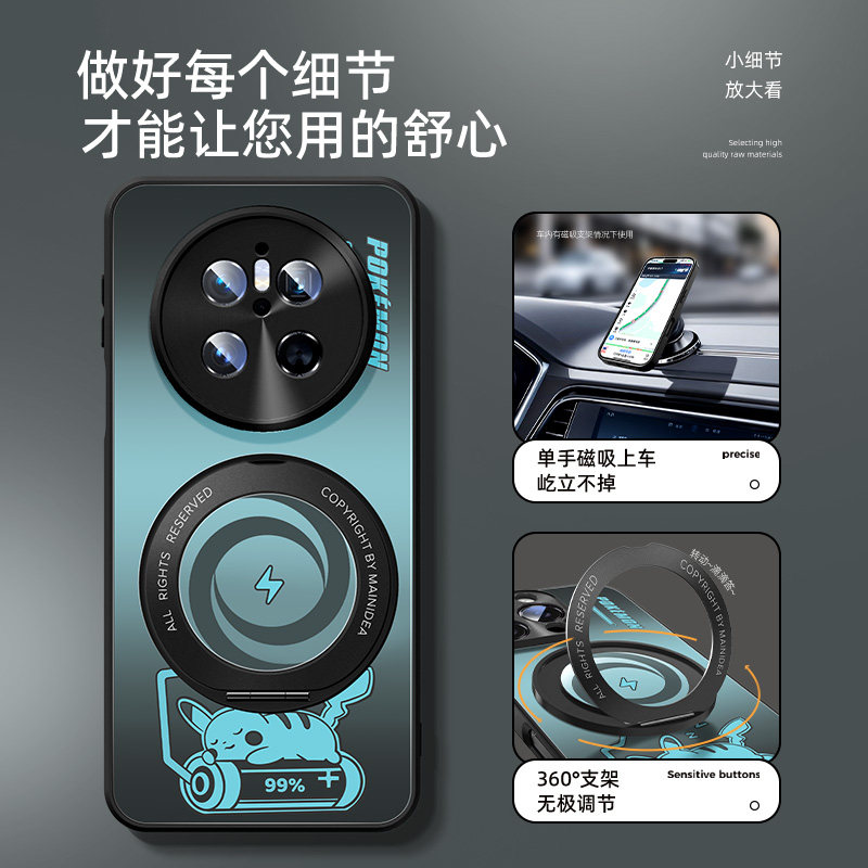 适用华为mate70air手机壳新款mate60pro+带支架huawei支点壳50e磁吸40epro宝可梦plus皮卡丘mt70por磨砂防摔
