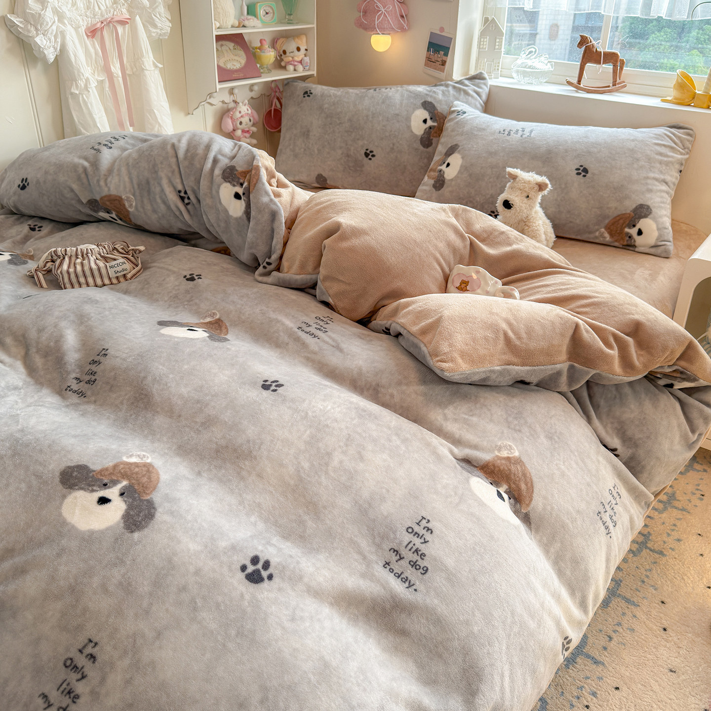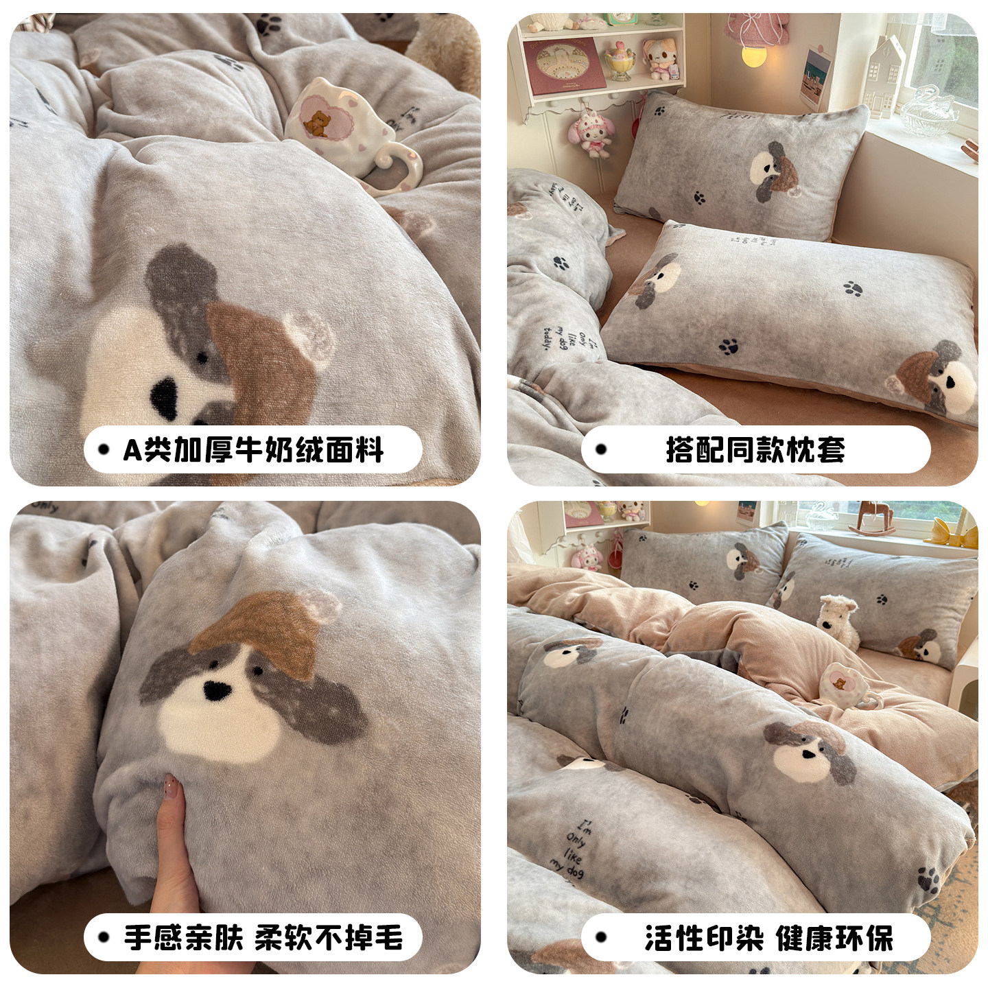 秋冬季加厚四件套牛奶绒被套床单双面加绒被罩床笠学生宿舍三件套