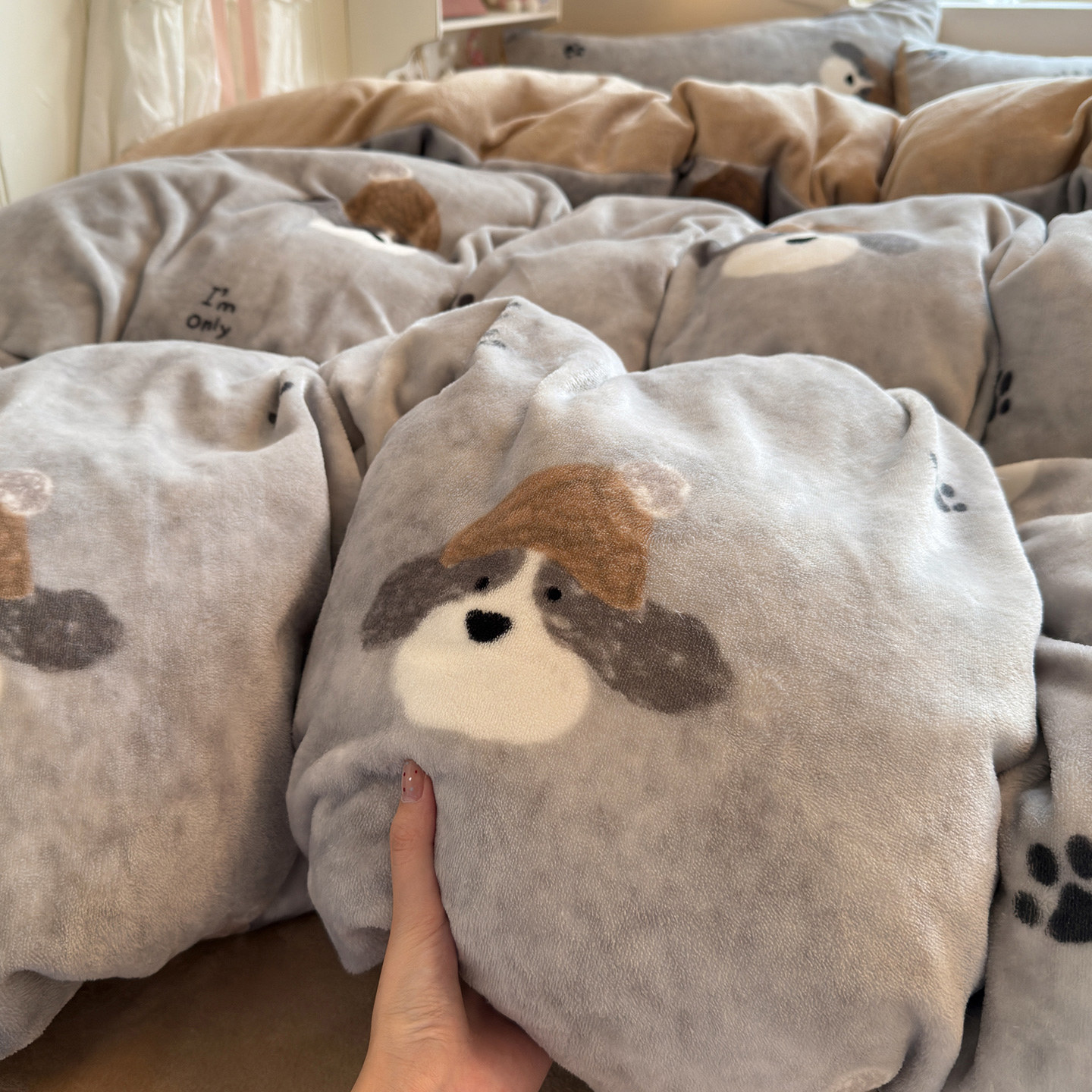 无印良品纯色秋冬牛奶绒四件套珊瑚绒床上绒三件套冬季加绒法兰绒