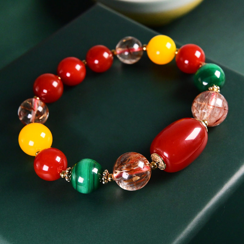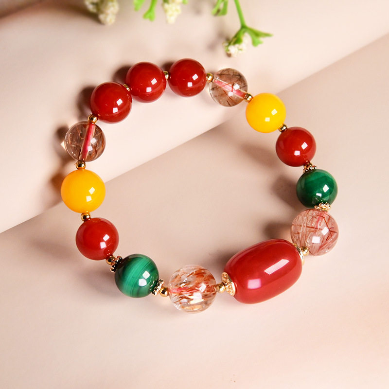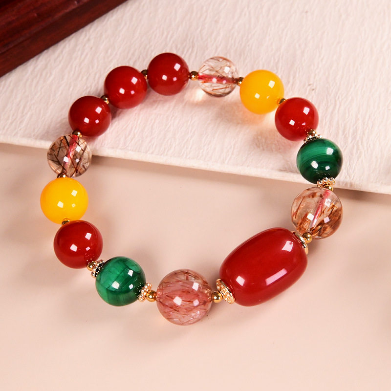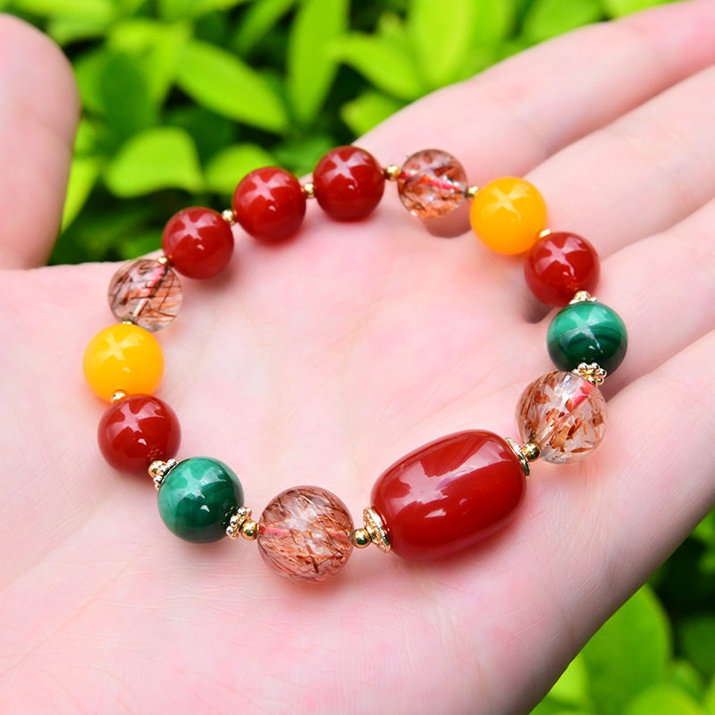 南红手串个性多宝手链玉髓孔雀石发晶手饰时尚气质女款典雅首饰品