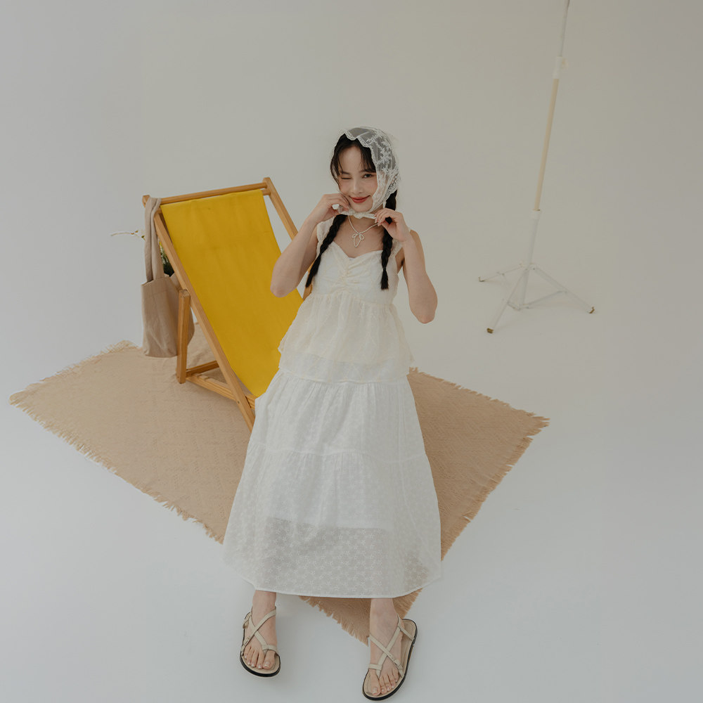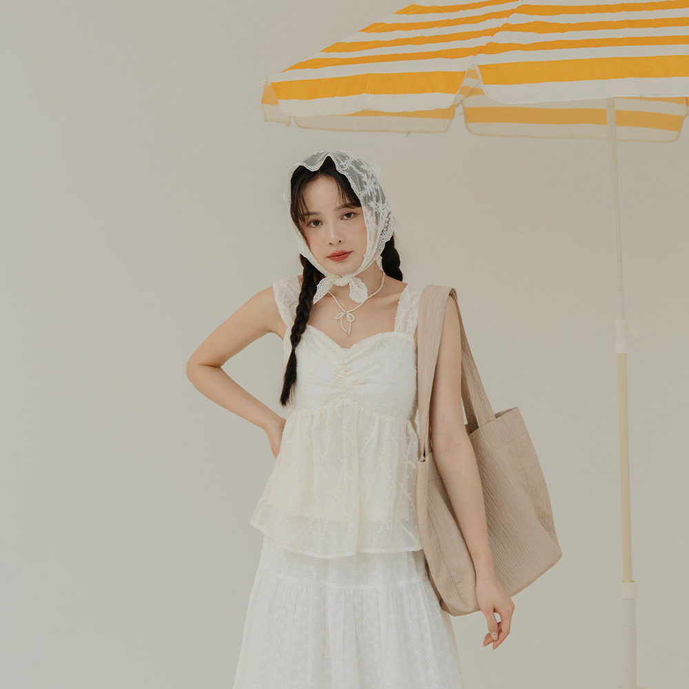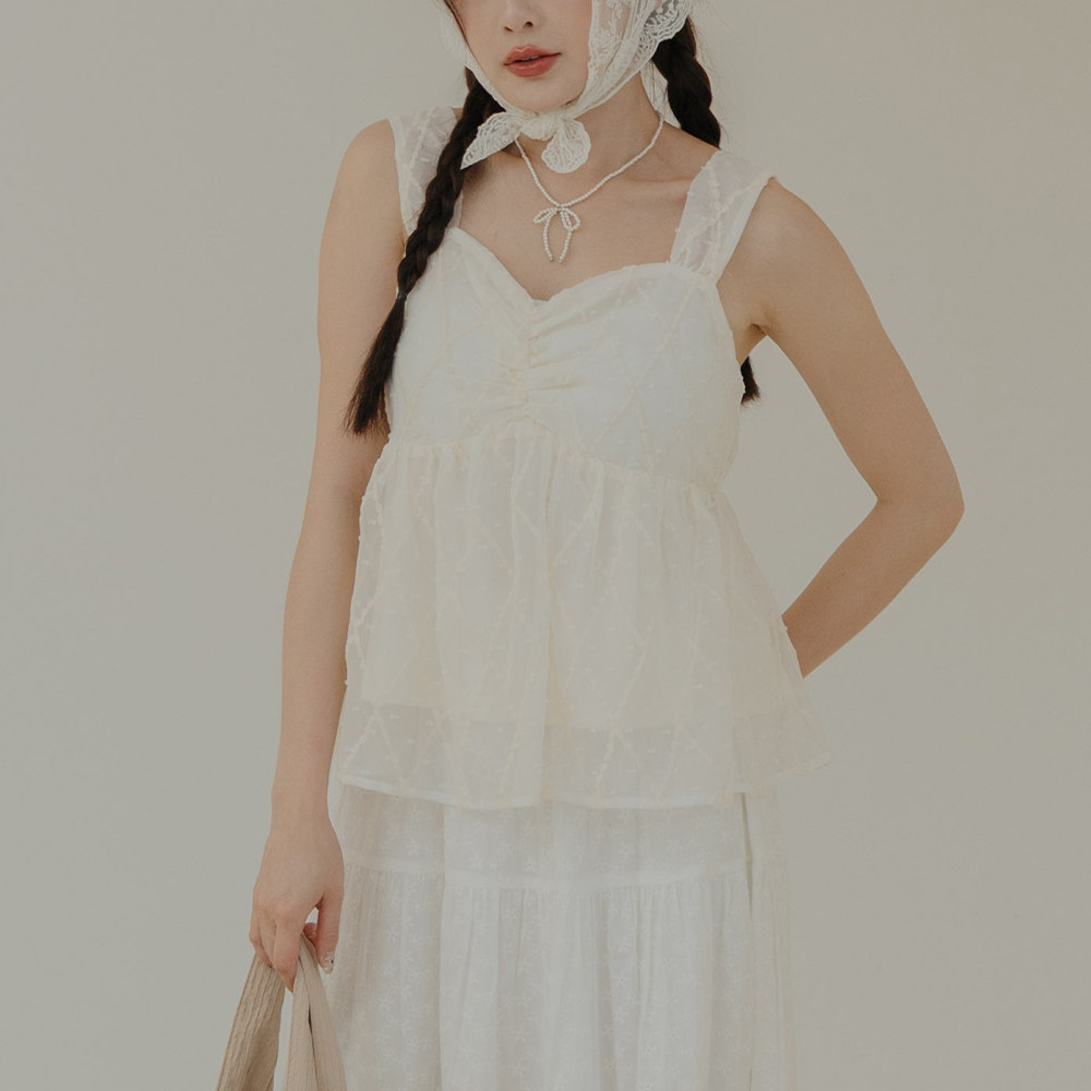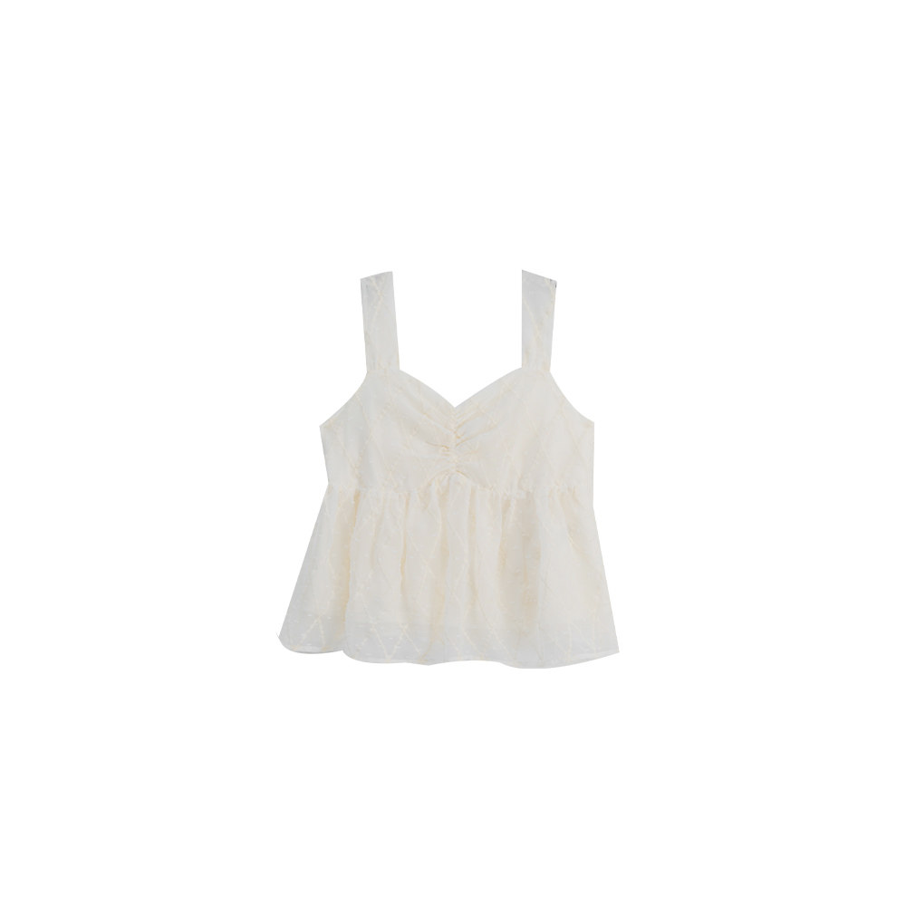 QUEENSHOP 2025春夏新品女装胸前抓皱双层网纱缇花背心01099058