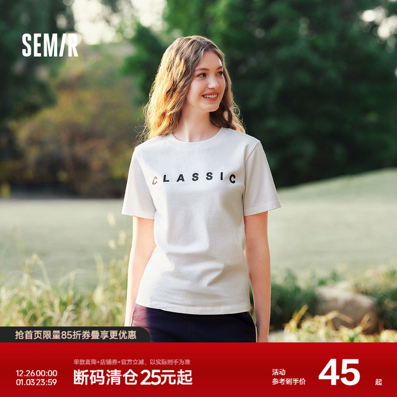森马短袖T恤女字母印花经典百搭休闲风夏季简约纯棉正肩上衣显瘦
