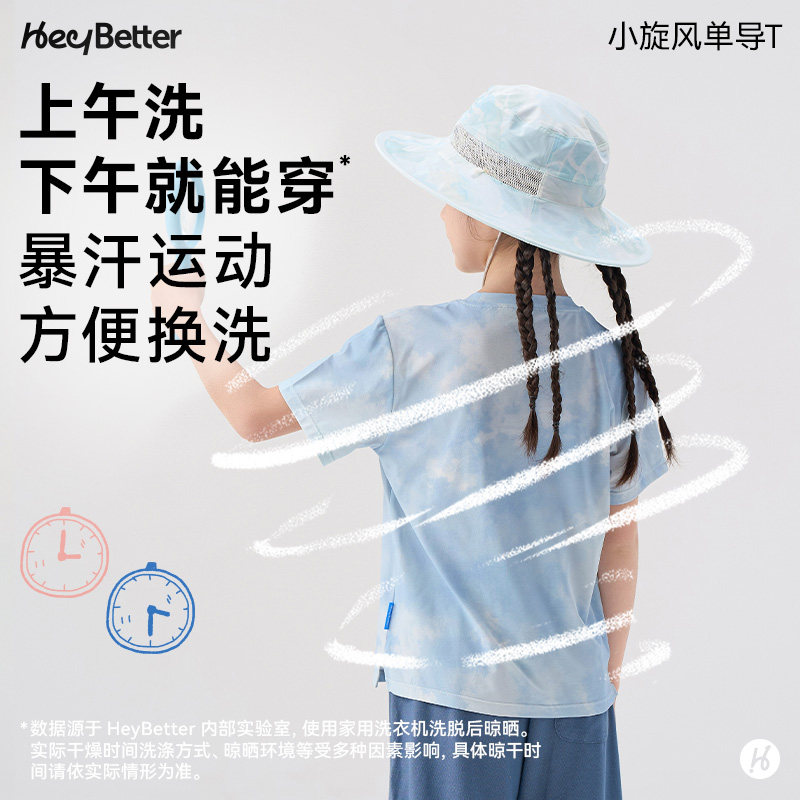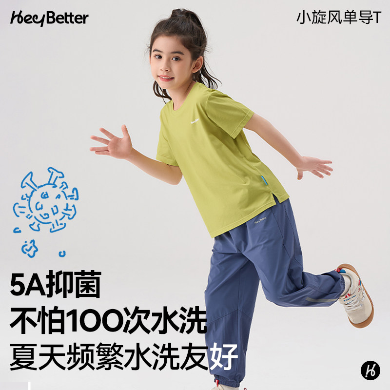 HeyBetter儿童T恤运动速干夏季排汗防晒凉感男女童透气圆领短袖
