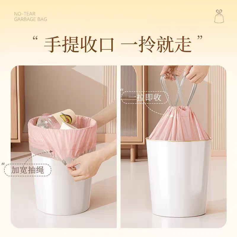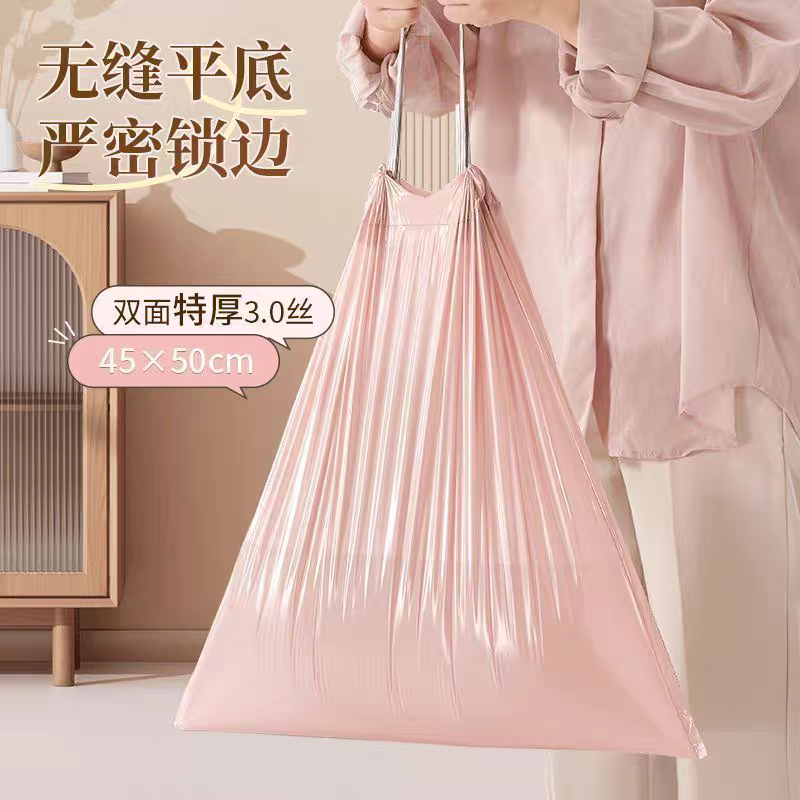 冰莓粉加厚手提式垃圾袋抽绳式家用塑料袋厨房宿舍大号粉色收纳袋