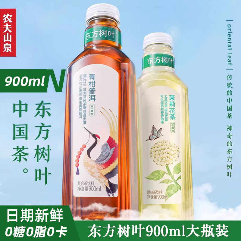 农夫山泉东方树叶茉莉花茶900ml*4瓶青柑普洱乌龙整箱无糖茶饮料