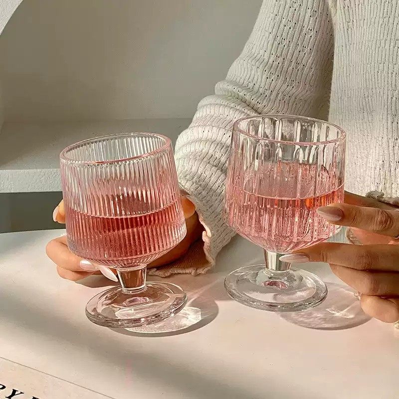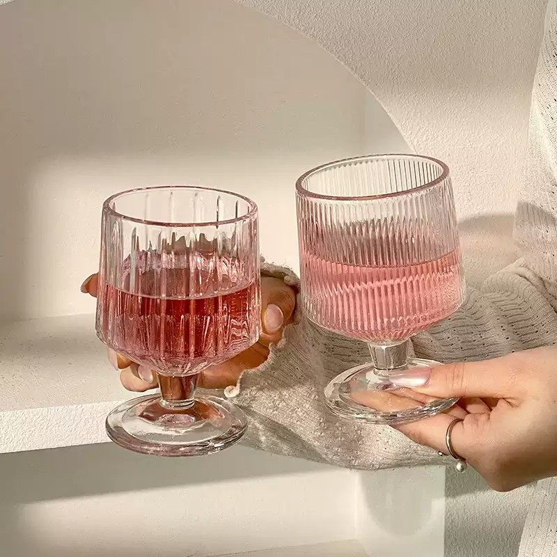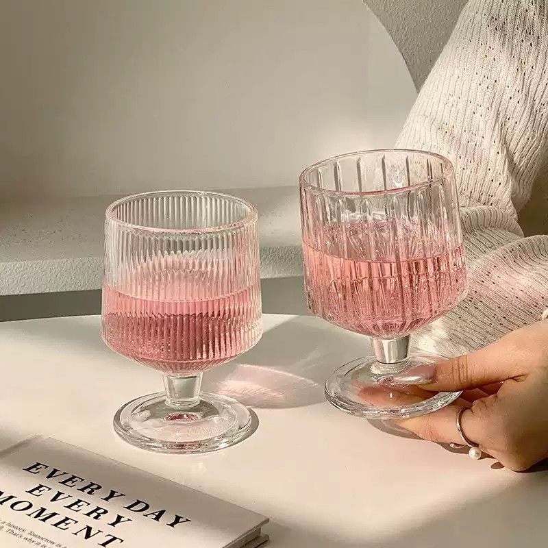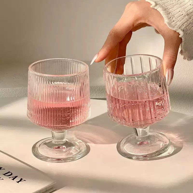 竖条纹矮款脚杯子ins高颜值家用玻璃杯饮料果汁水杯洋酒杯冰淇淋