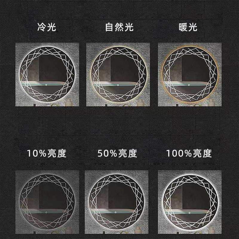 浴室镜圆形除雾镜子带LED灯挂墙式化妆镜洗手台梳妆镜子智能除雾