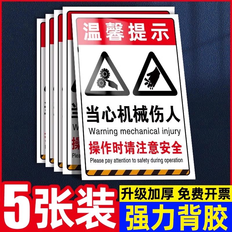 当心机械伤人标识牌机械伤害警示牌安全标识牌手车间工厂机器设备注意触电提示标签小心机械伤人贴纸警告标牌