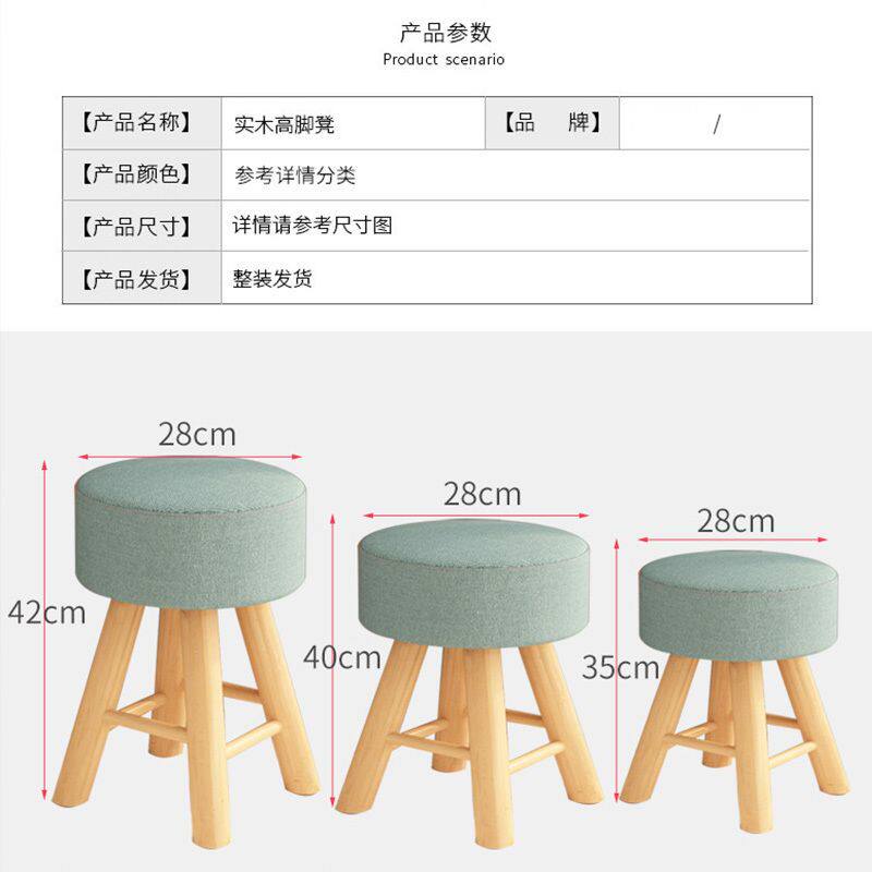 实木矮凳布艺换鞋凳卧室梳妆凳吧台凳客厅餐桌凳家用圆凳小凳子