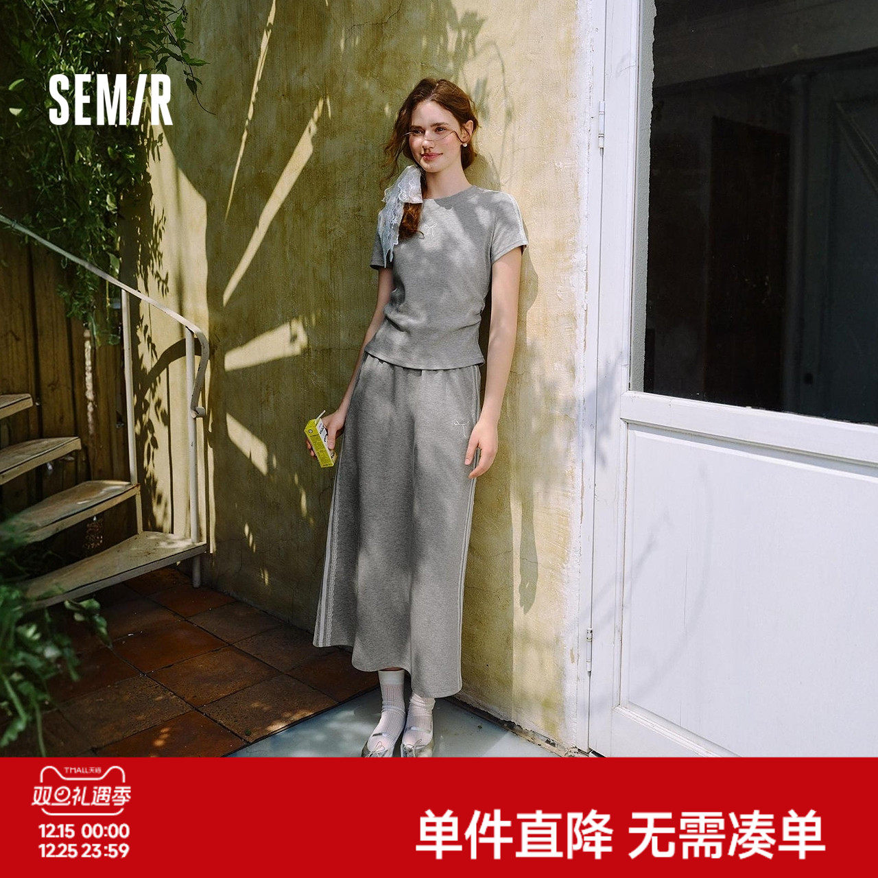 商场同款|森柔森马套装女冬撞色开叉毛衣直筒长裙2025新款两件套