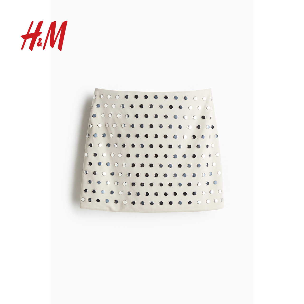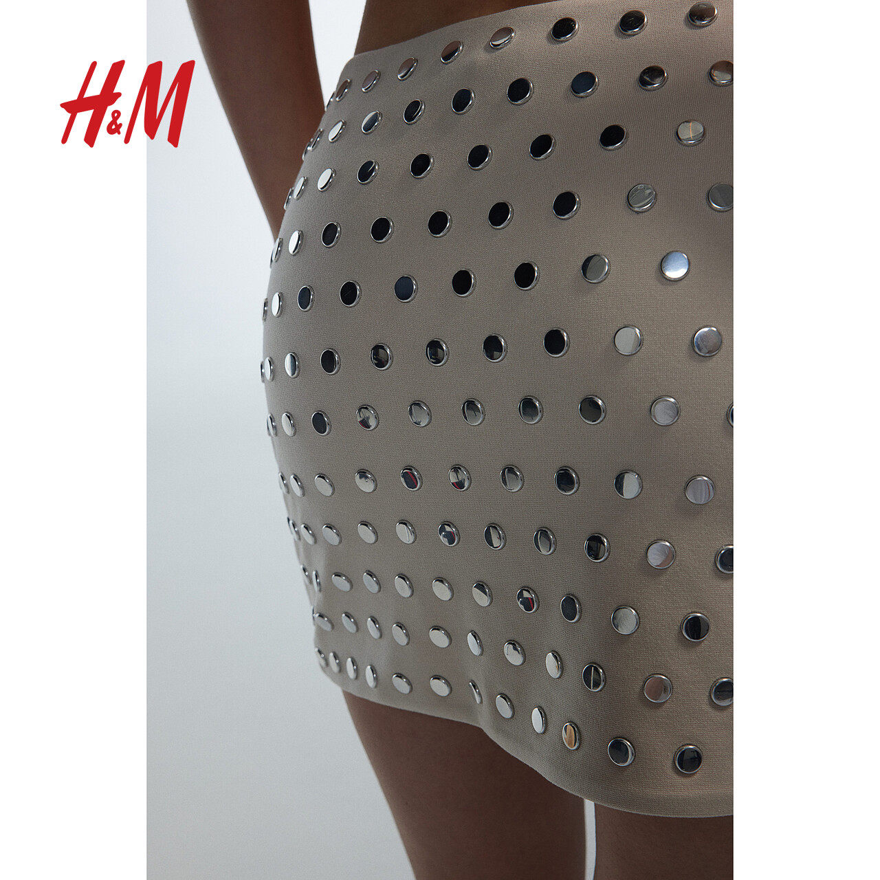 HM女装半身裙冬季时尚礼服重磅修身直筒铆钉party小礼裙1256954