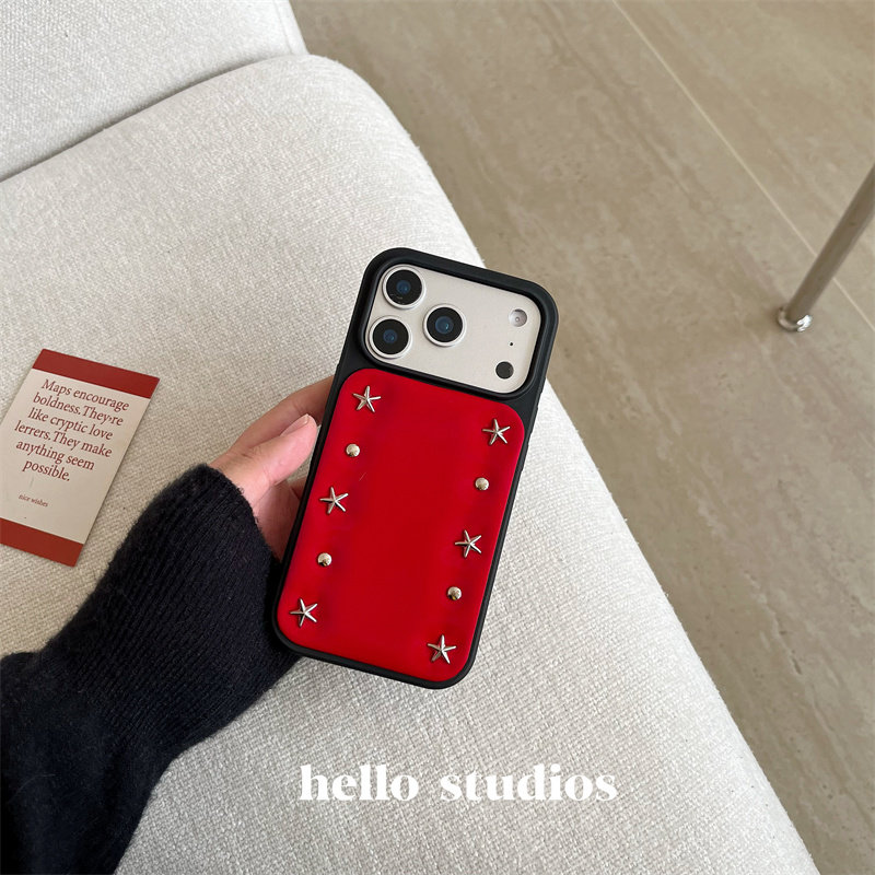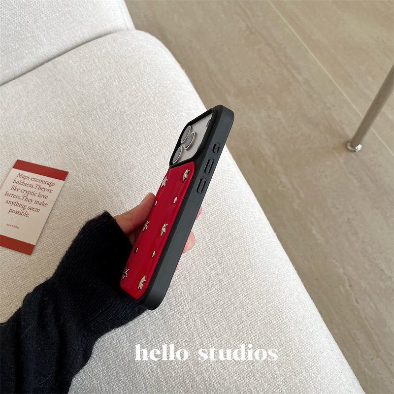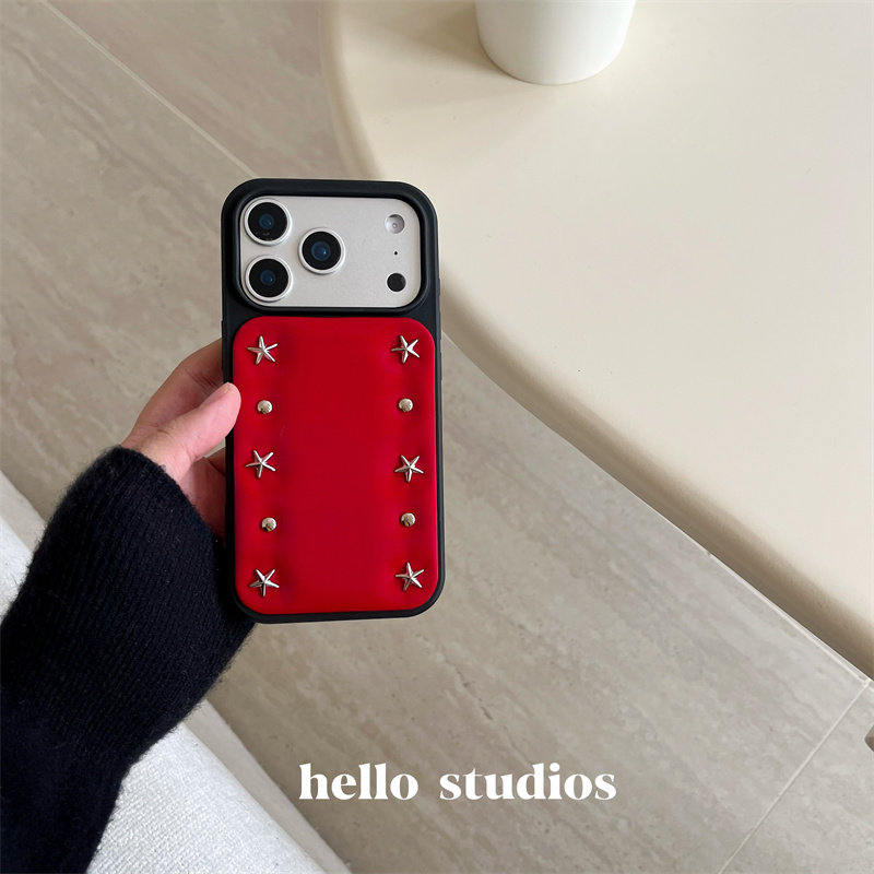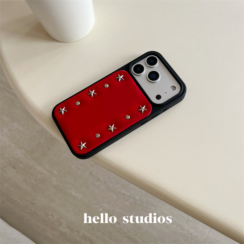 hello studio高级感圣诞红色铆钉壳适用苹果17promax新款iPhone16PRo/14pro壳15/13