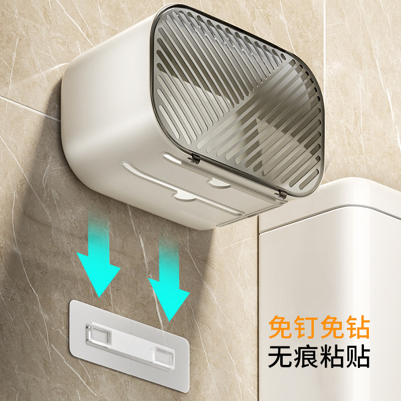 轻奢纸巾盒卫生间防水盒壁挂式免打孔抽纸卷纸置物架强力贴洗脸巾